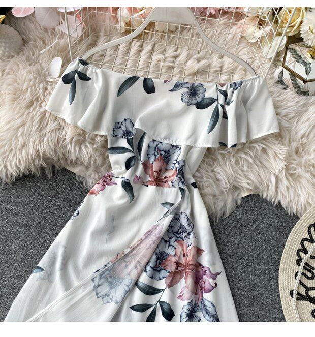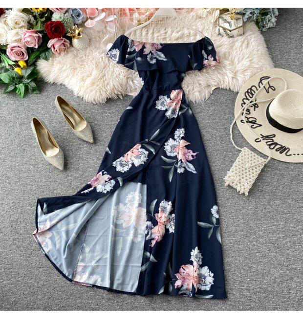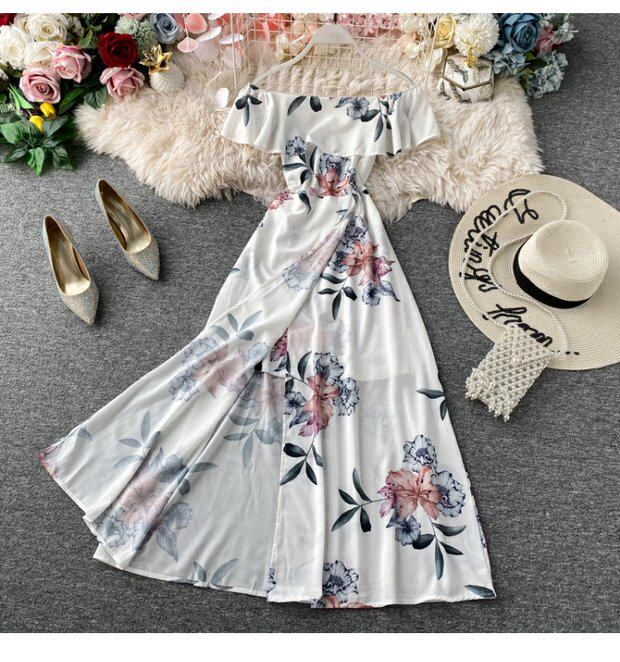 Сексуальное пляжное платье, длинная юбка, стиль бохо, открытые плечи