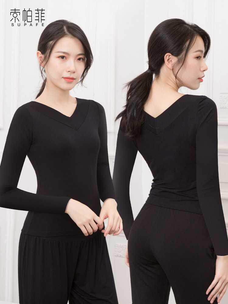 Классическая черная спортивная одежда, танцующий лонгслив, V-образный вырез