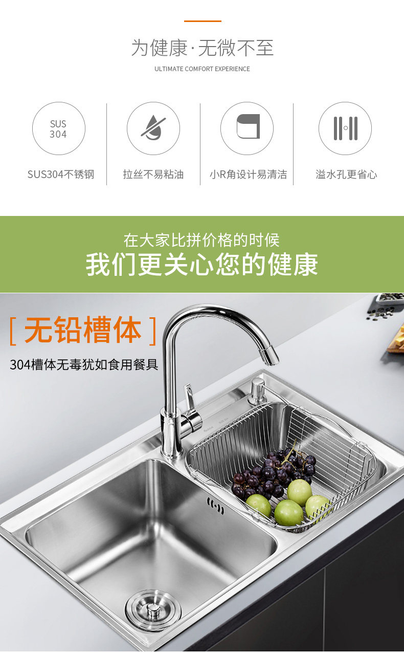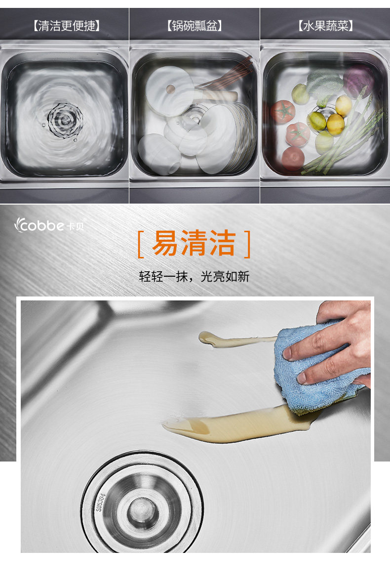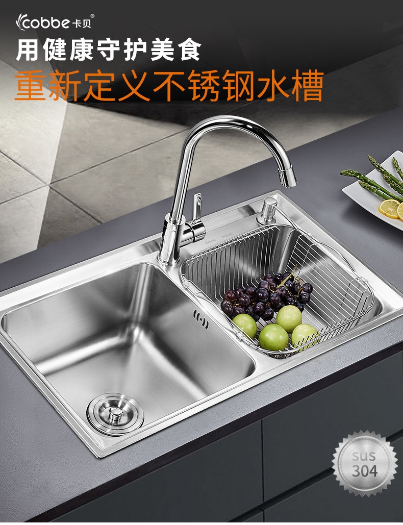Carba Washing Basin Кухня для одного кусочка с двойным танком для промывки танка 304.