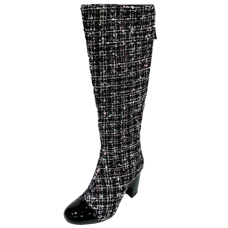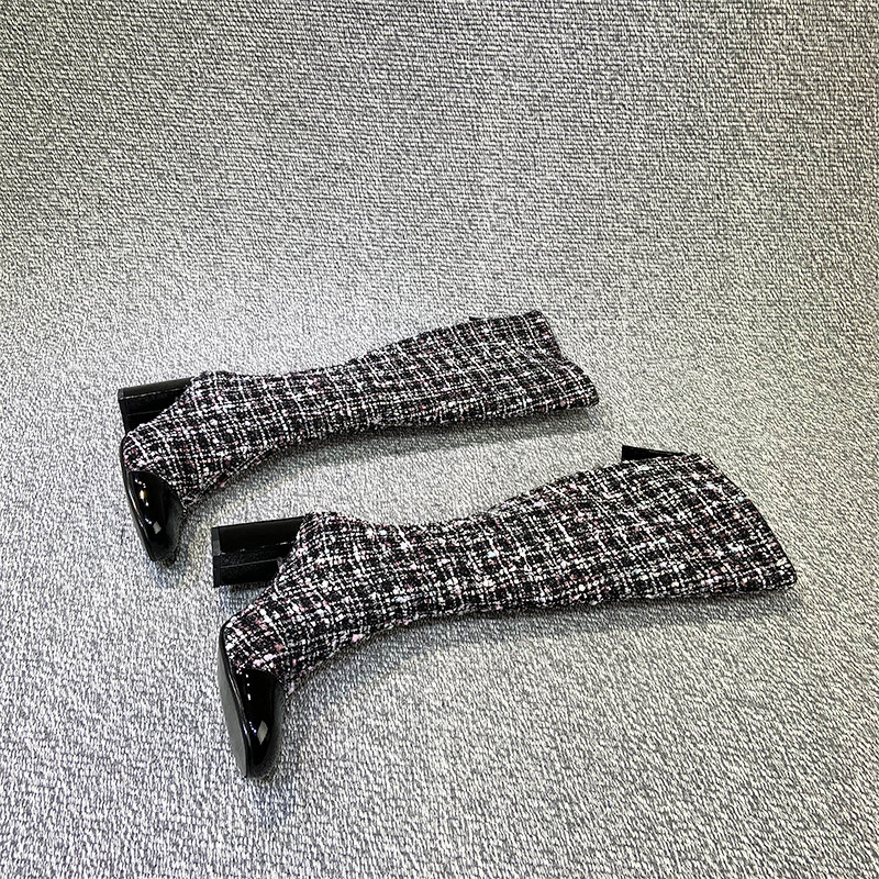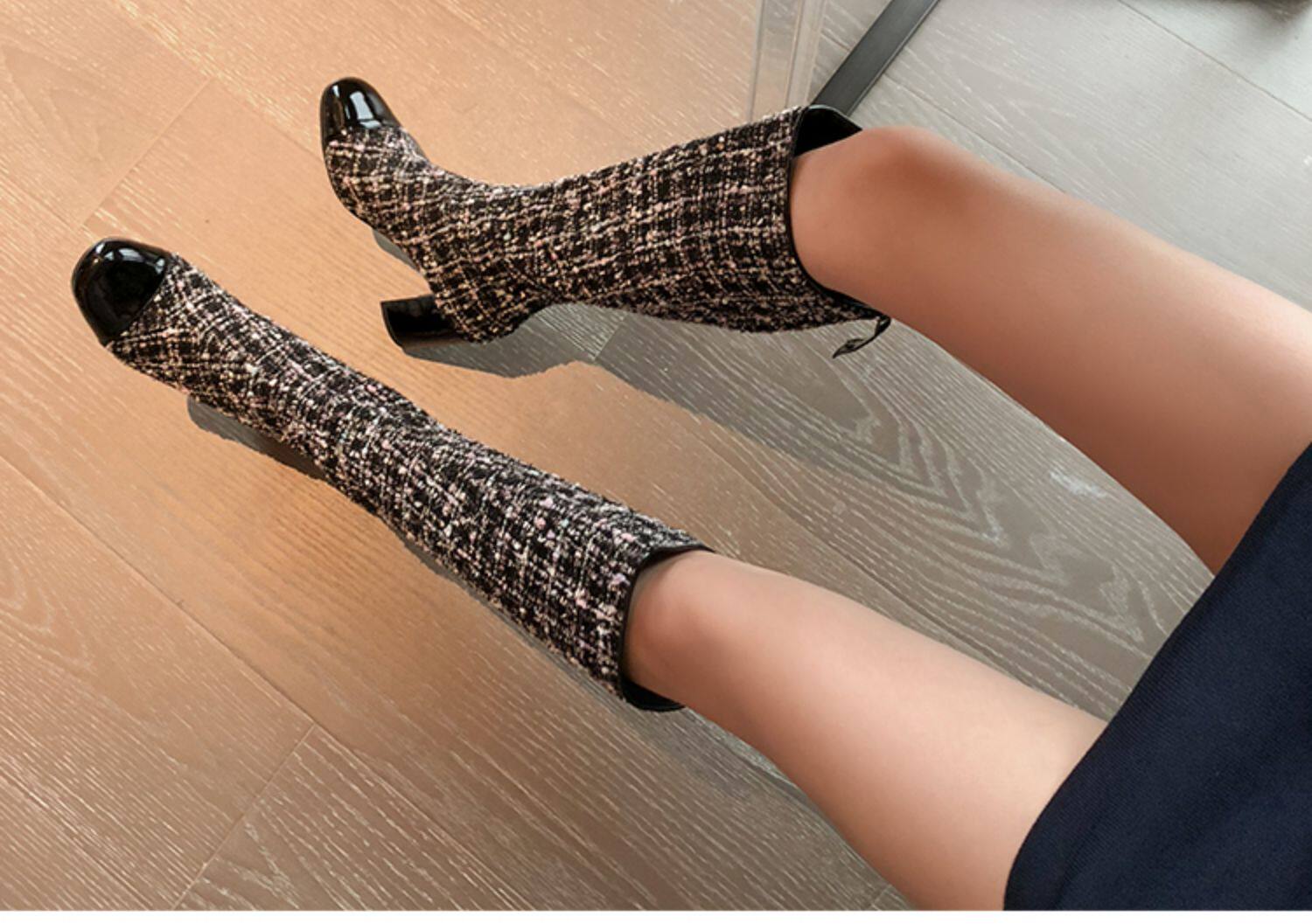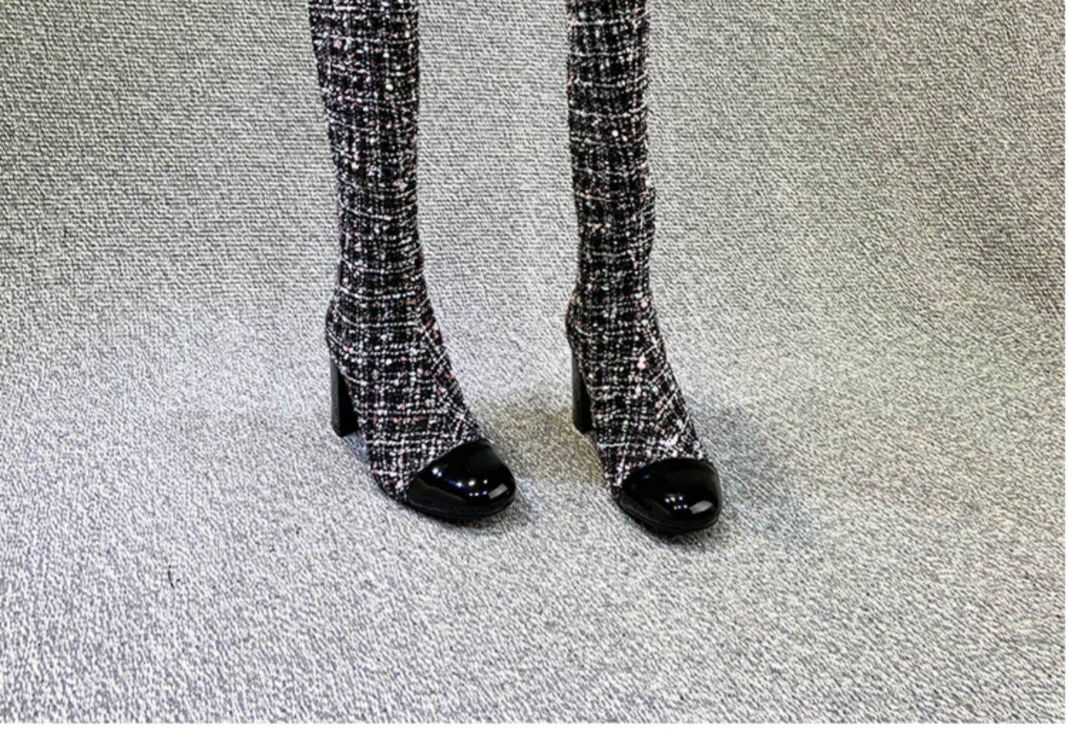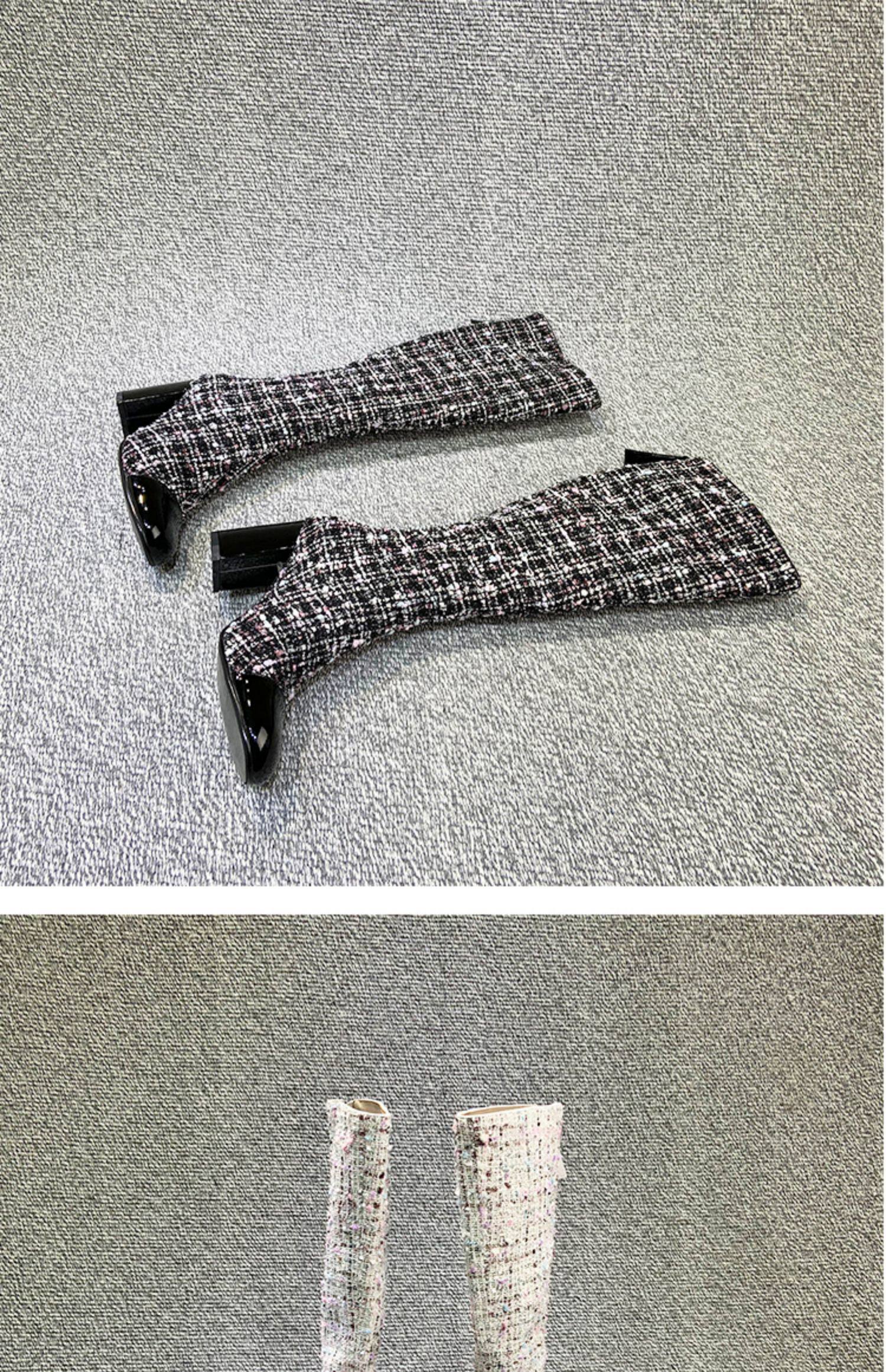 Демисезонные ботинки, белые высокие сапоги на высоком каблуке, в стиле Шанель