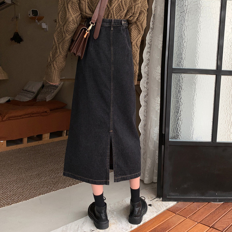 Весенняя длинная приталенная джинсовая юбка, большой размер