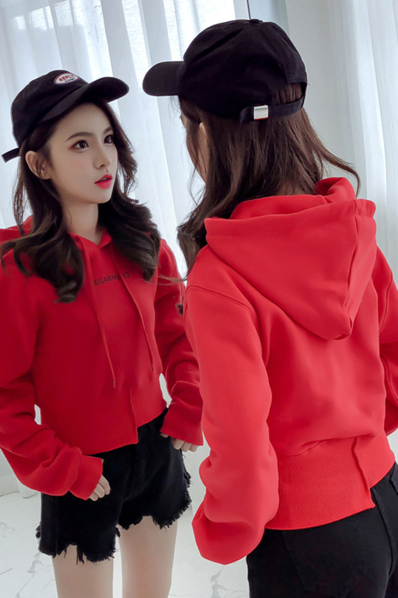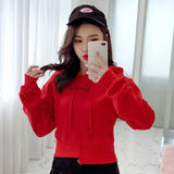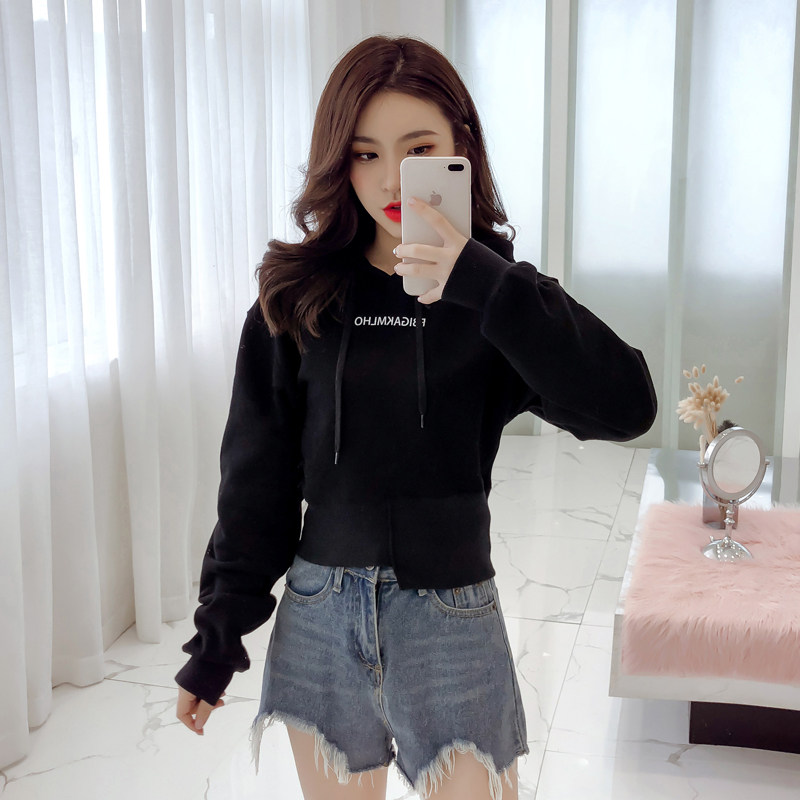 Осенняя короткая толстовка с капюшоном, коллекция 2021, высокая талия, свободный крой, с вышивкой, подходит для подростков