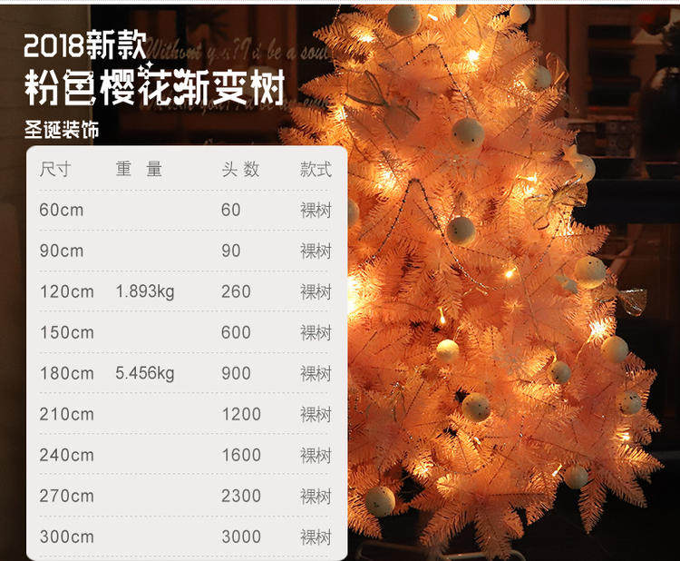 Украшение рождественской елки вишни розовое градиентное дерево 3 м/2,4 м/1,8 м окно торгового центра розовый комплект рождественской елки