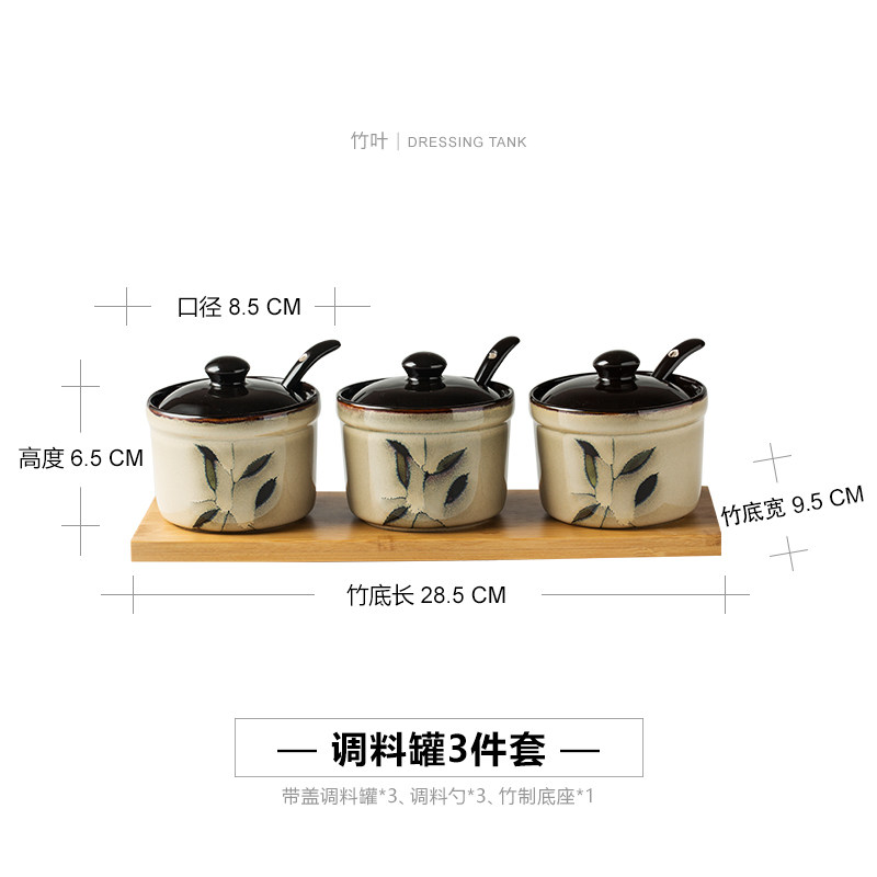 Бамбуковая кухонная приправа с тремя керамическими банками для приправы приправы для приправы приправы соли Солета.