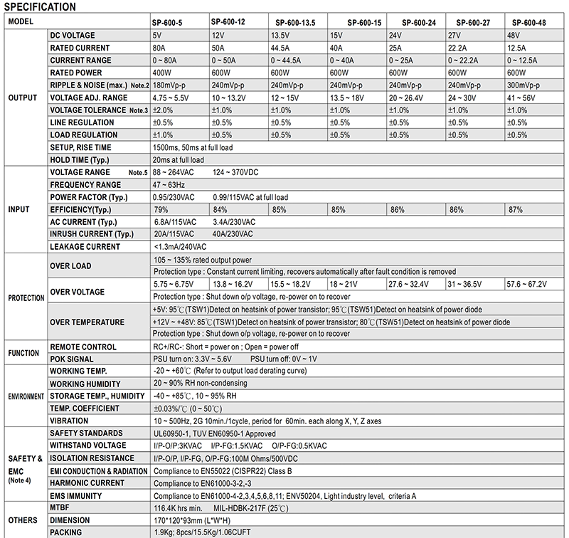 明威 600W220V Питания питания SP-600-220 Питание 220V2,7A S-600-220