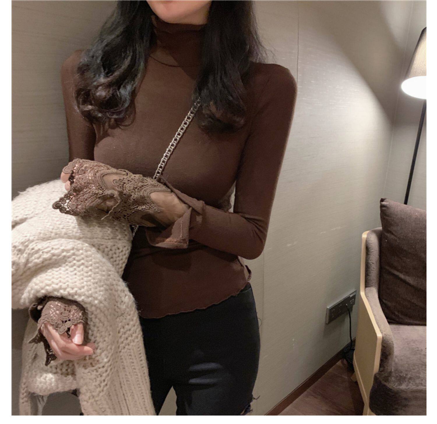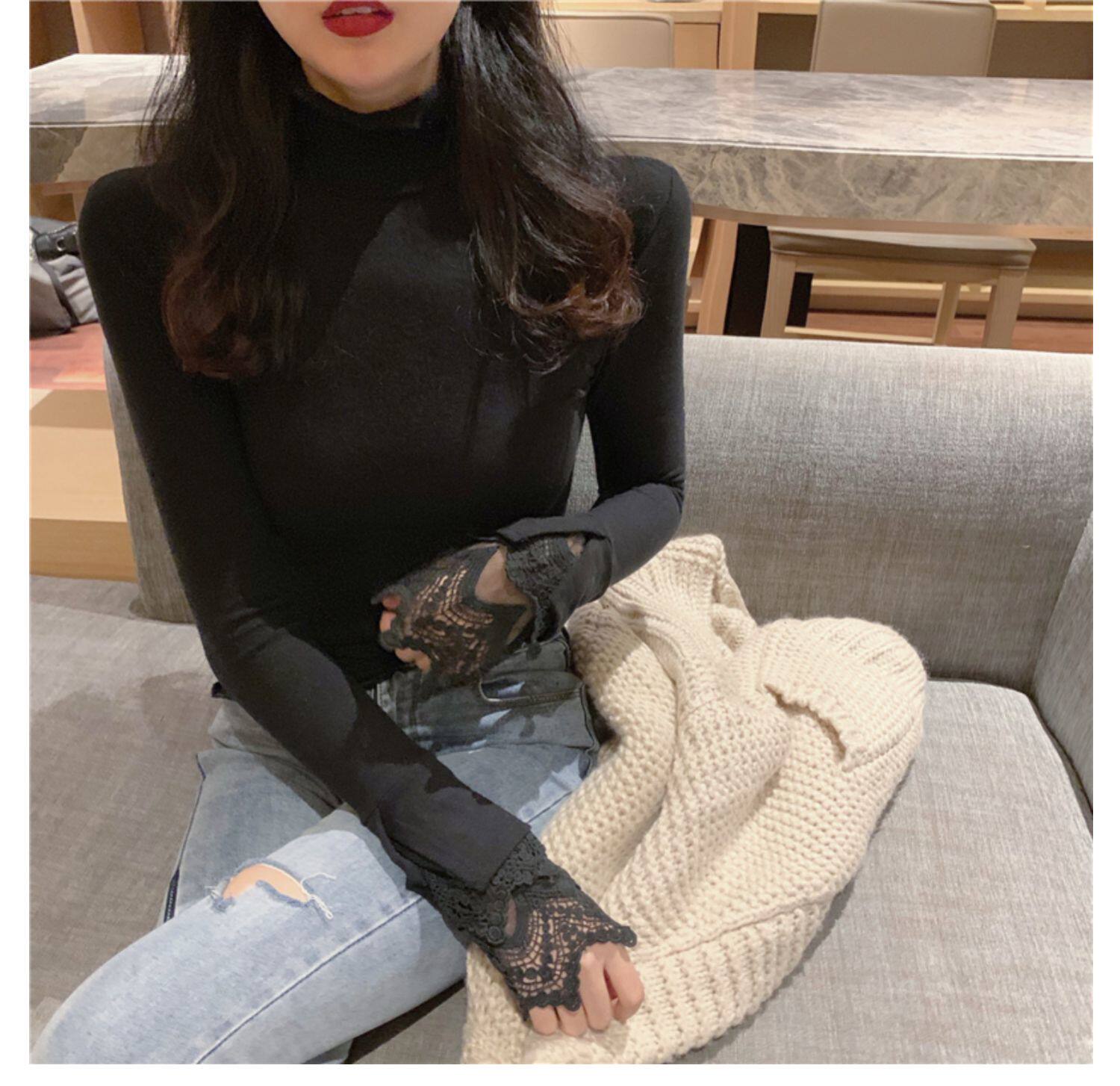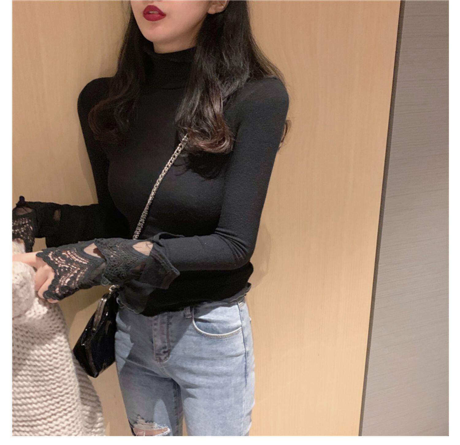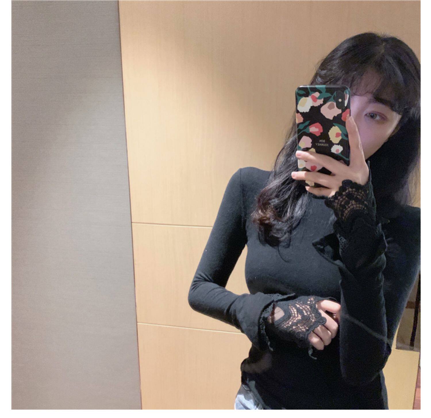 Весенний приталенный хлопковый лонгслив, белая утепленная кружевная шелковая приятная телу футболка, в западном стиле