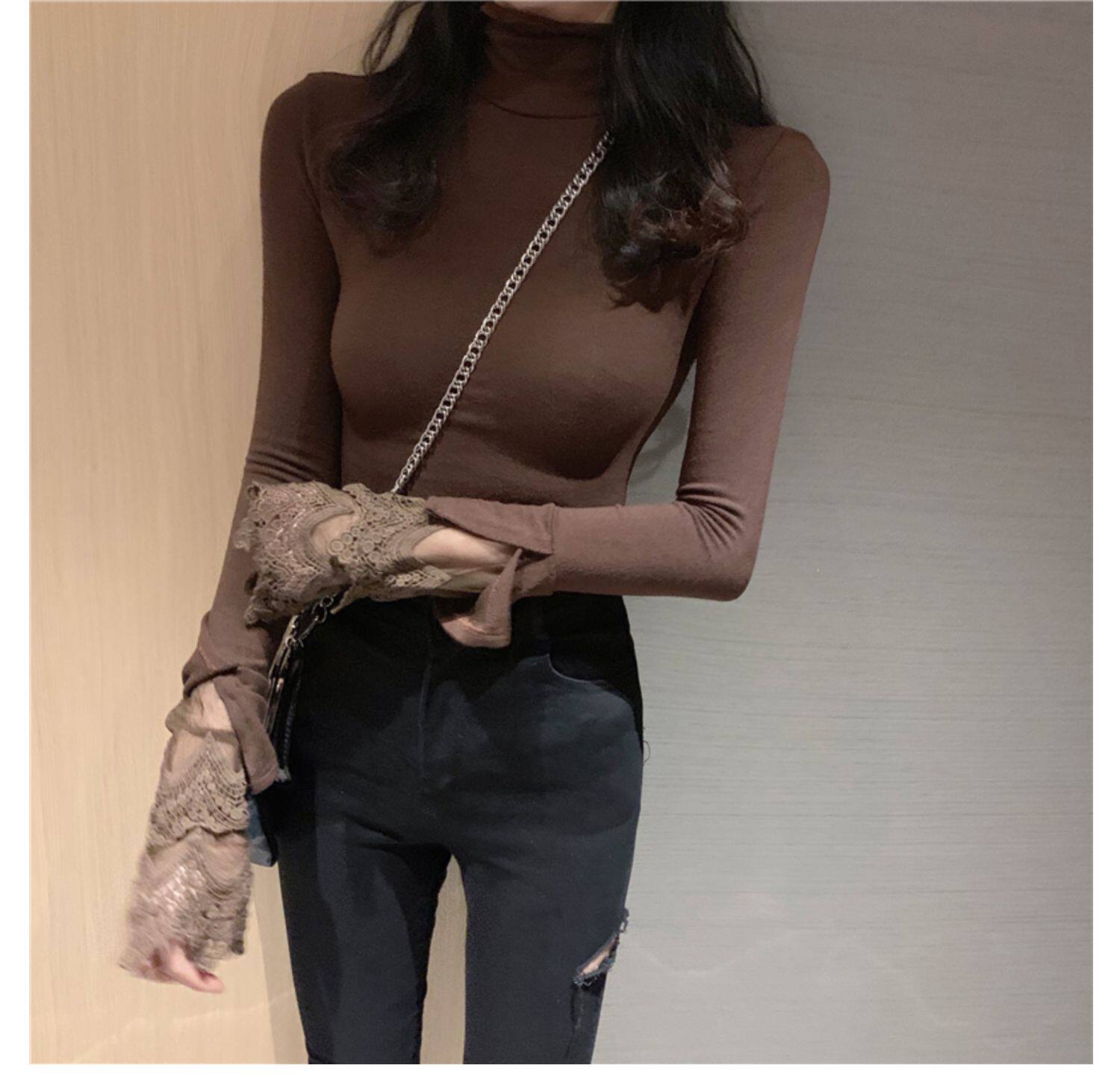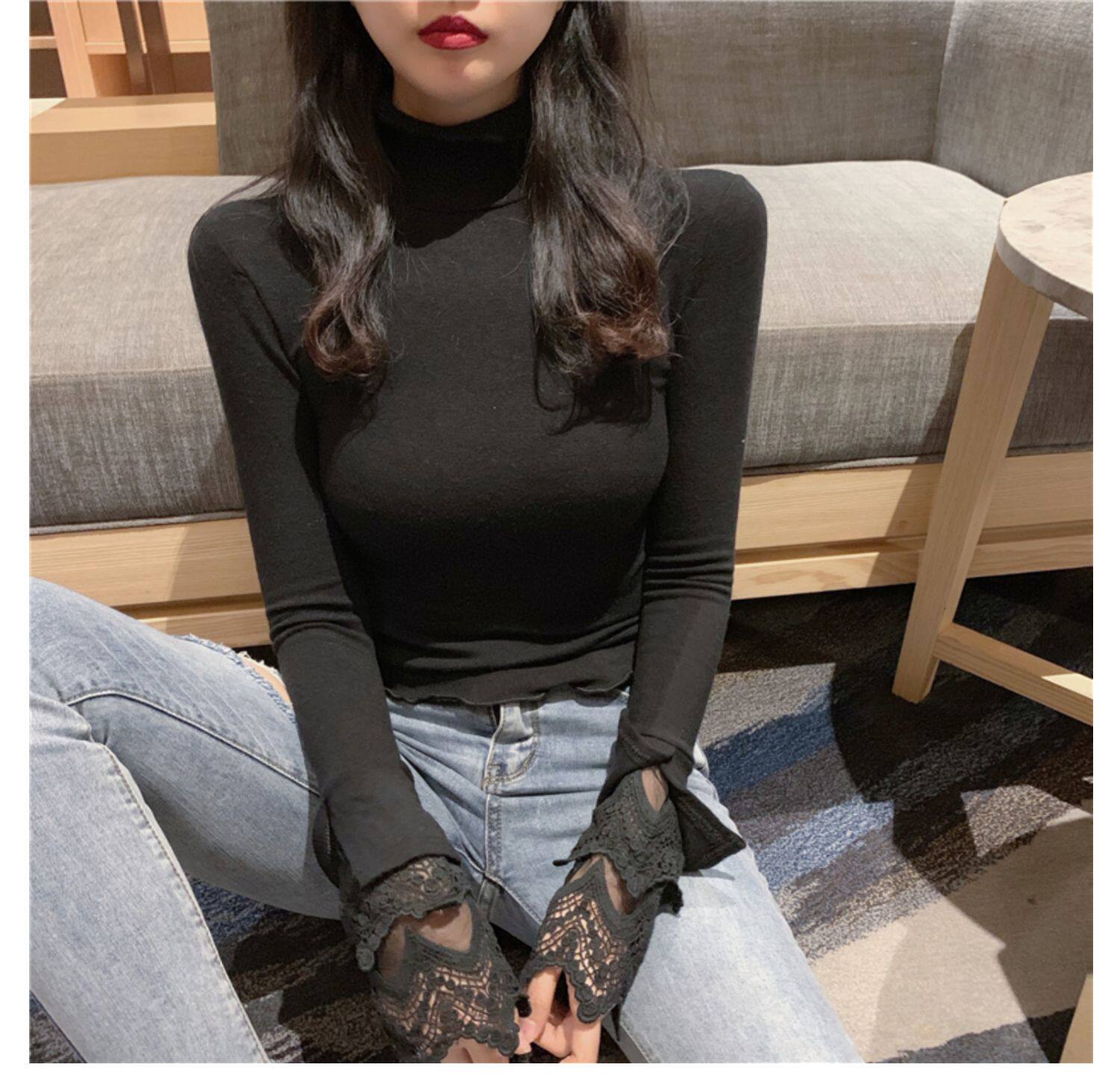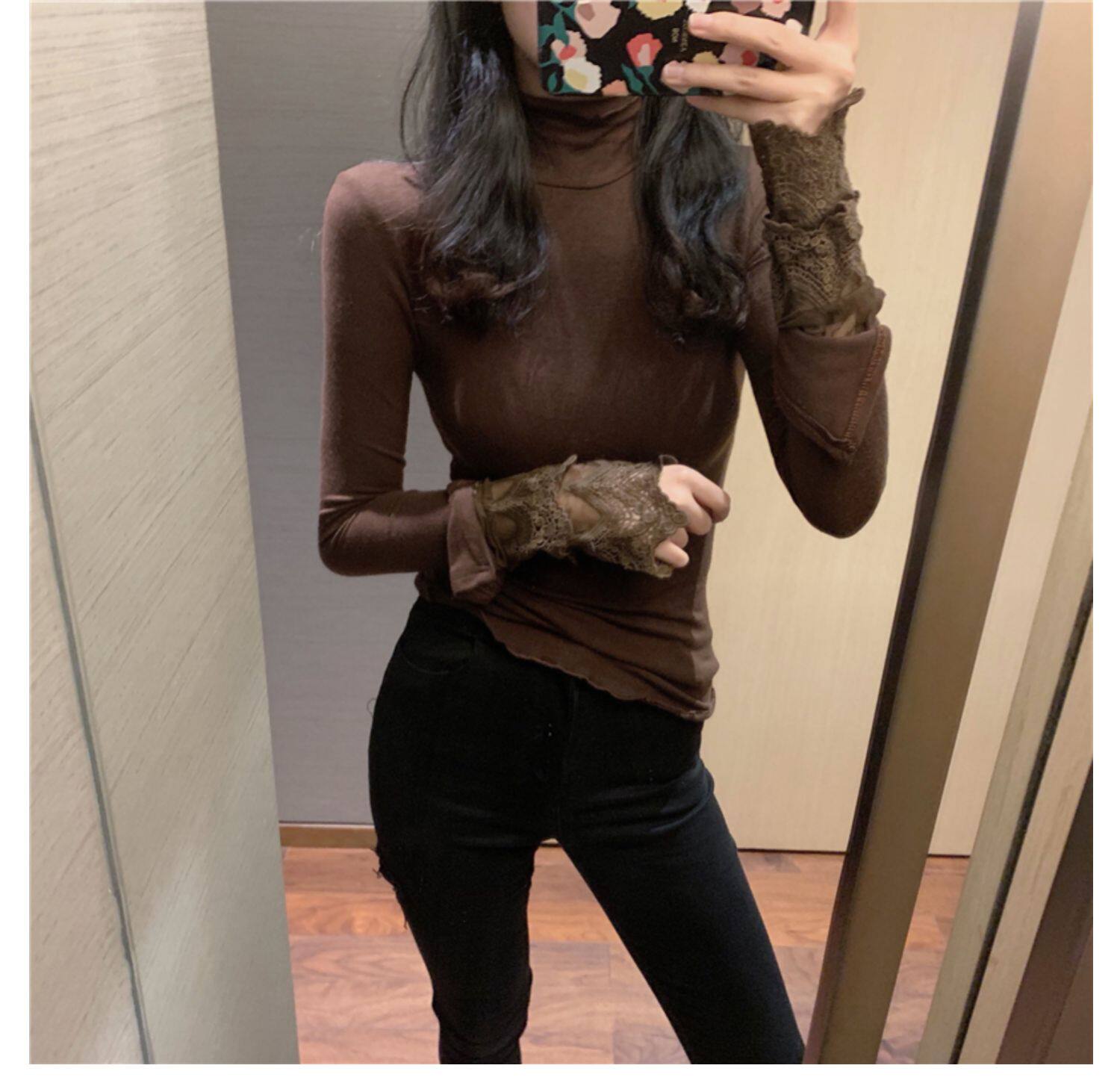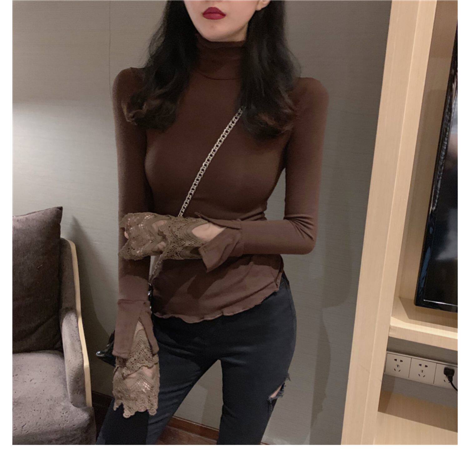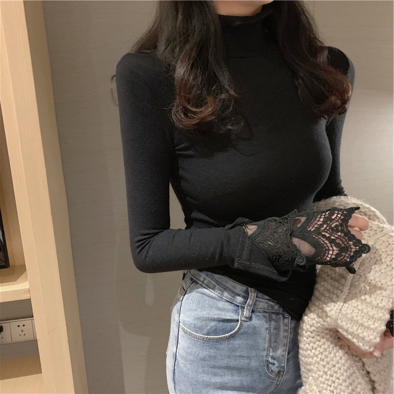 Весенний приталенный хлопковый лонгслив, белая утепленная кружевная шелковая приятная телу футболка, в западном стиле