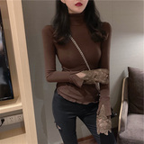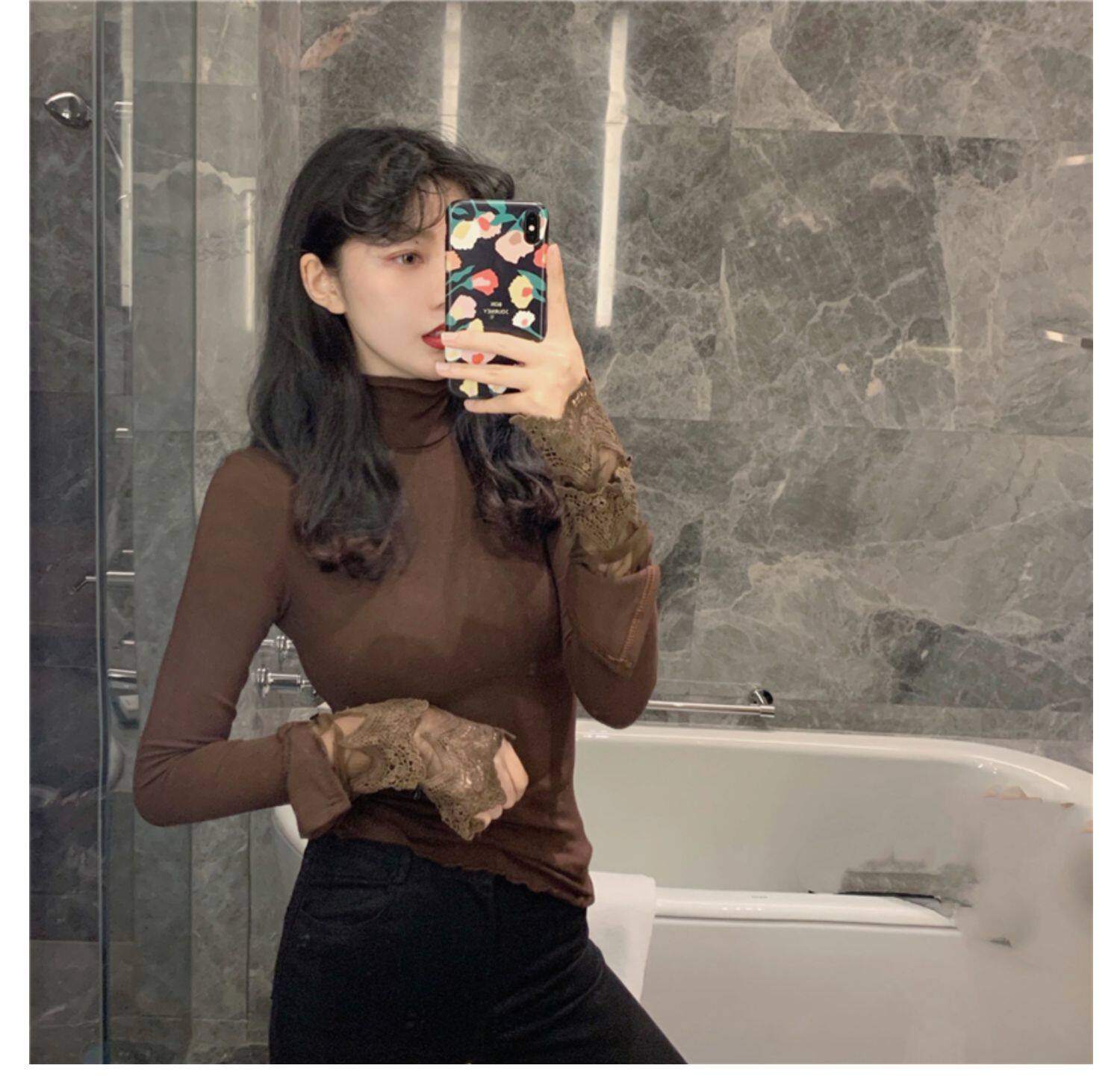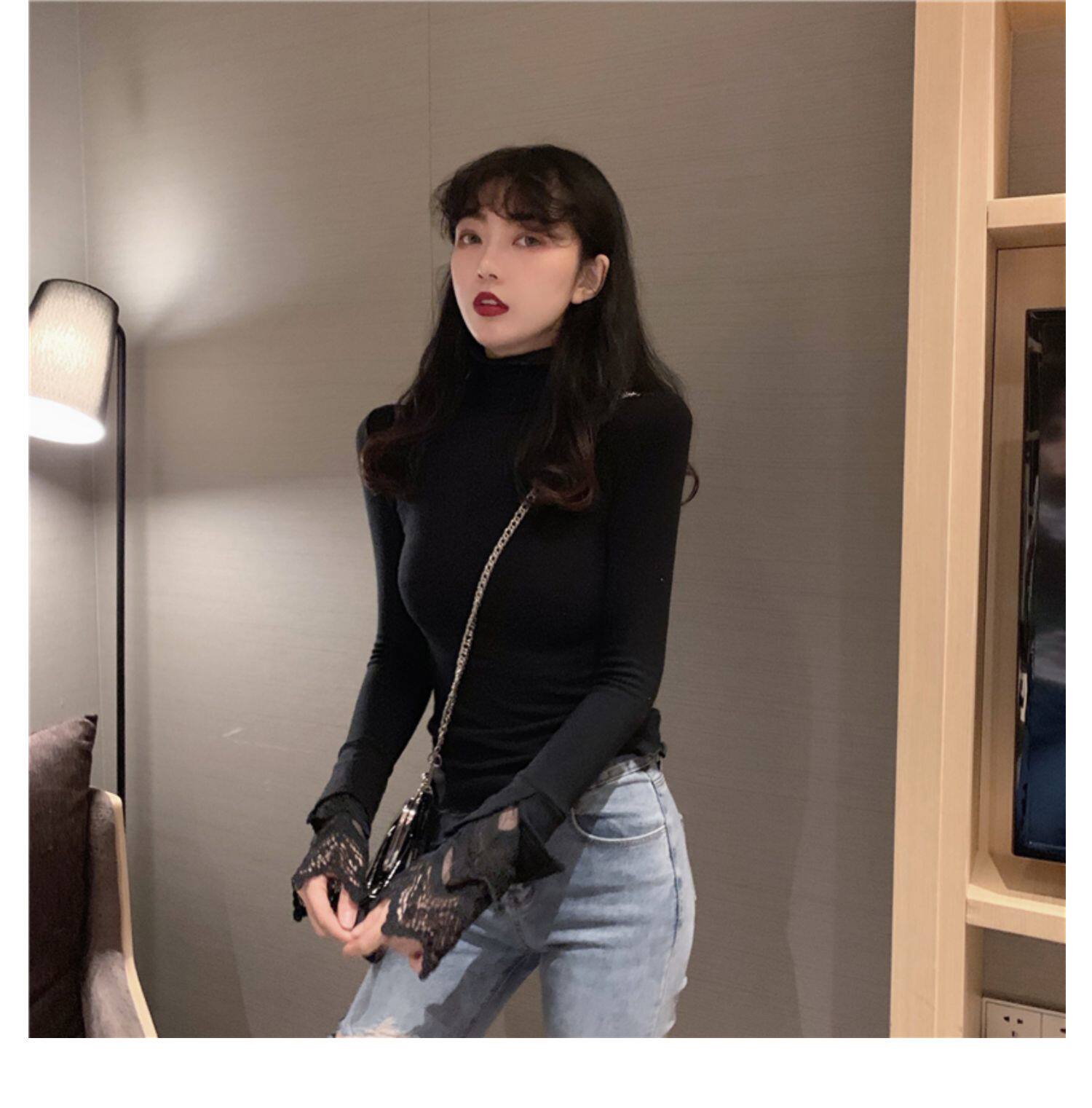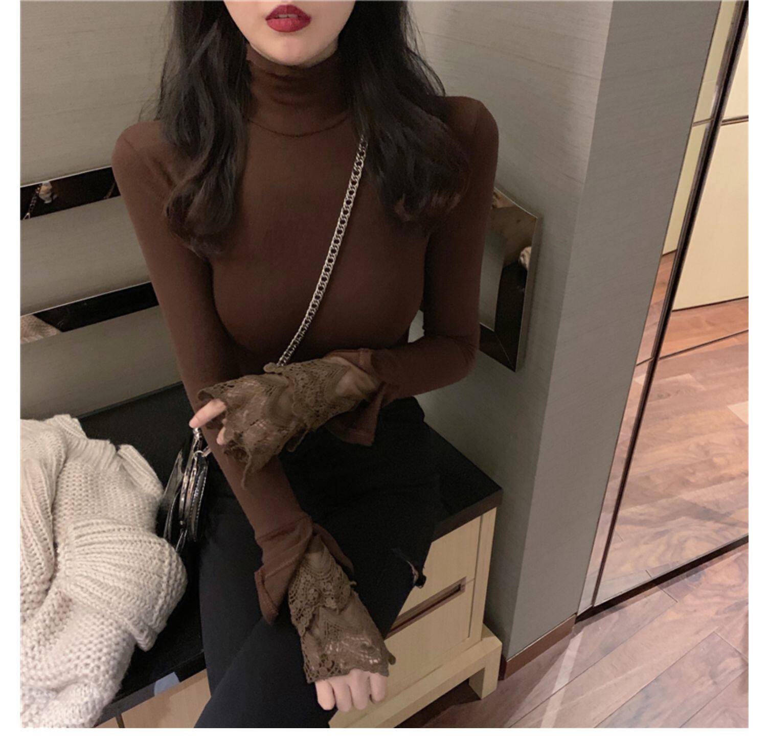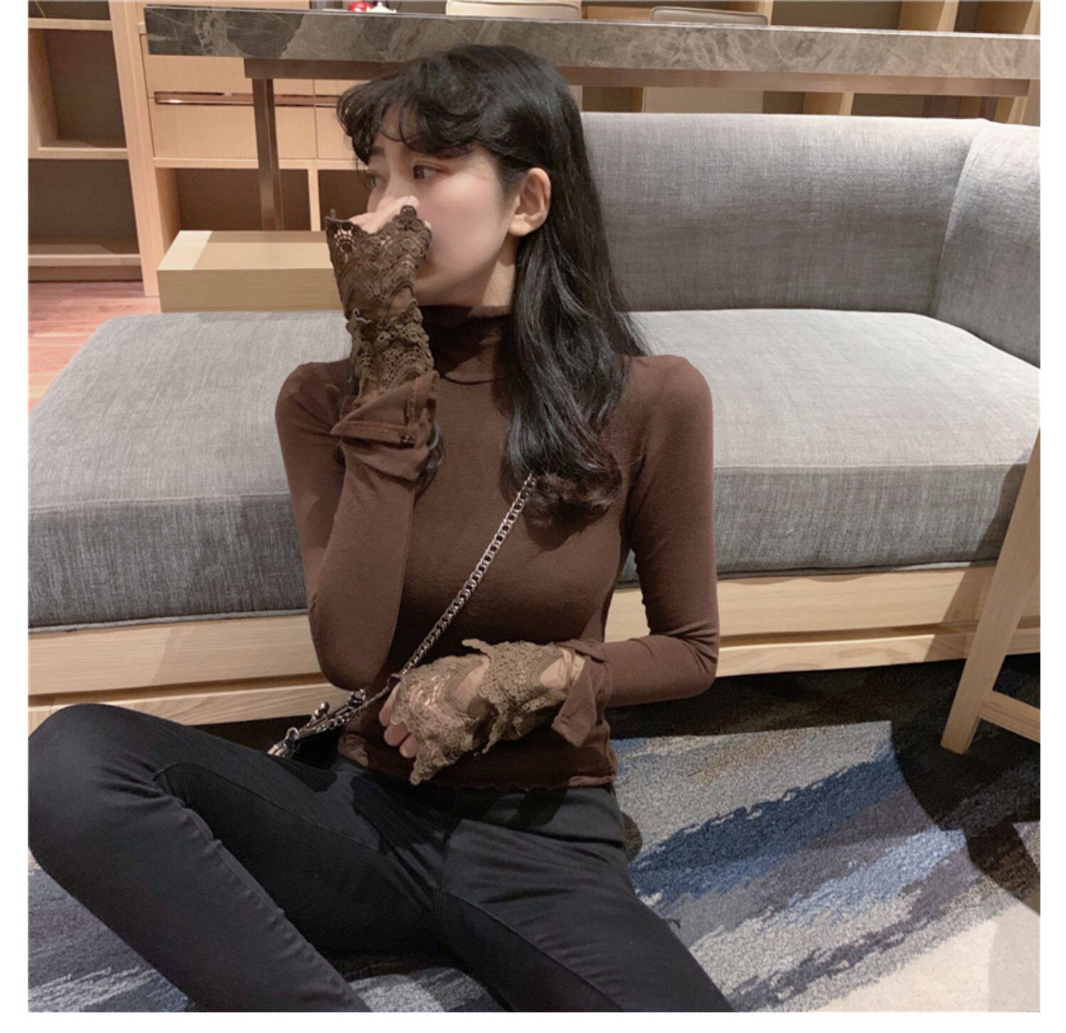 Весенний приталенный хлопковый лонгслив, белая утепленная кружевная шелковая приятная телу футболка, в западном стиле