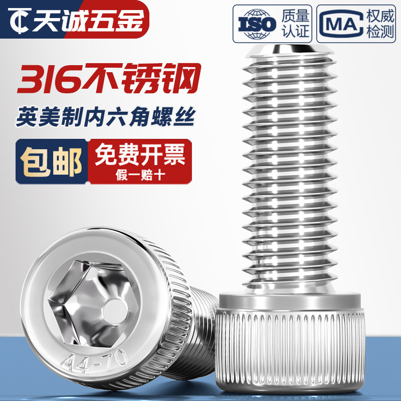 Американский британский винт из нержавеющей стали 316 с цилиндрической головкой и шестигранной головкой с полным зубом и полузубом, винт с чашечной головкой, винт UNC