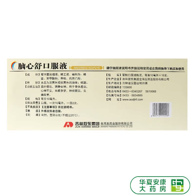 敖东 Сердце мозга твердый свет 10 мл*10 наборов/коробка невростения бессонница, мечтательная головная боль