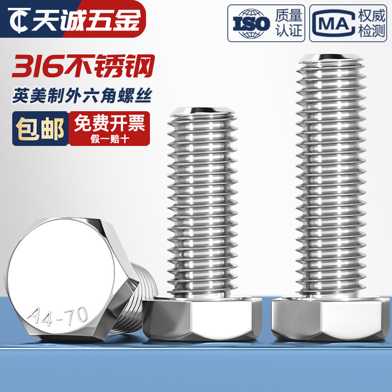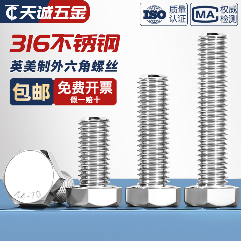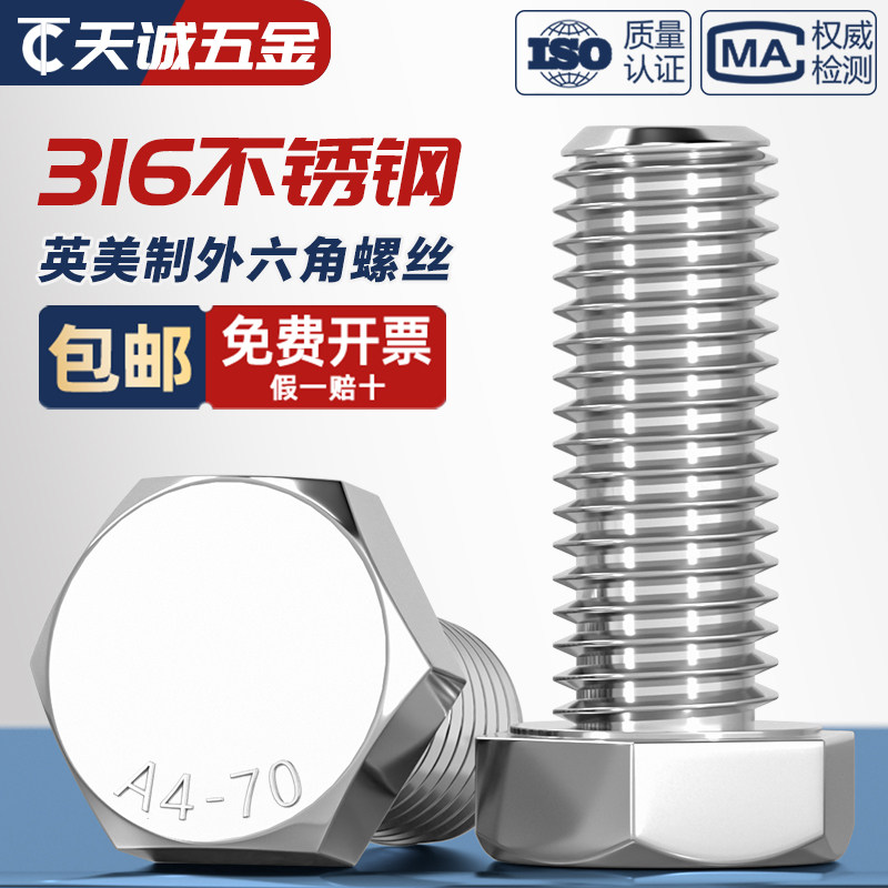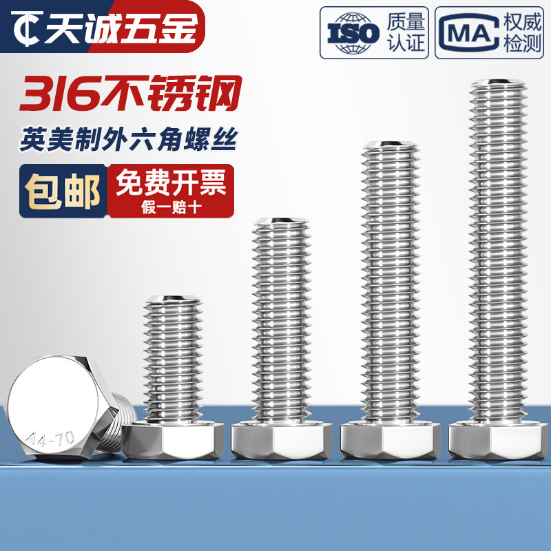 Американские и британские винты и болты с шестигранной головкой из нержавеющей стали 316 1/4–20 5/16–18 3/8–16 1/2–13