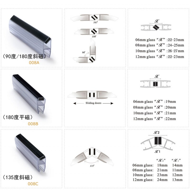 Особое примечание: (1) Значение приведенных выше характеристик, например 2 метра x 8 мм: 2 метра — это стандартная длина доставки, а 8 мм — толщина стекла.(2) Примечания по установке: Немного нажмите на полоску с верхнего конца или прямоугольного края стекла и прижмите ее на место, а затем прижмите ее вдоль стекла с помощью палочки.Поскольку эта полоска плотно прилегает, клей не требуется.(3) Если установка очень тугая или лента частично белая, вы можете продуть ее вперед и назад с помощью фена. Не дуйте в одно место, чтобы предотвратить слишком высокую температуру и деформацию ленты. (4) Байонет магнитной полосы имеет конусную форму.Внешний штык маленький, а внутренний большой. Это необходимо для более плотного прилегания стекла после установки. Внутренний байонет снабжен противоскользящим мягким клеем, поэтому клей не требуется.Выбирая планку, не смотрите на внешний байонет.Толщина стекла аналогична ширине внутренней штыки магнитной полосыСущность(5) 90 градусов и 180 градусов диагональными магнитными полосками одинаковы.Одна из магнитных полос 90 градусов и 135 градусов, а затем сосет одну голову, а затем может быть превращена в 180 градусов магнитных полос.