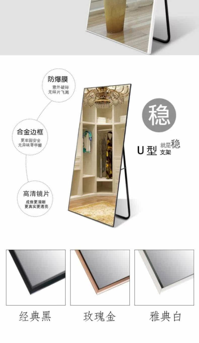 Полная домашняя заправка зеркало фиксированная стена макияж корейская версия корейской версии мобильной прямоугольной современной танцующей женщины.