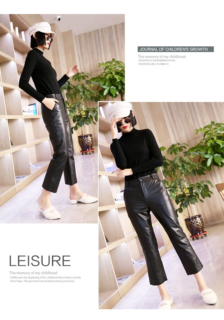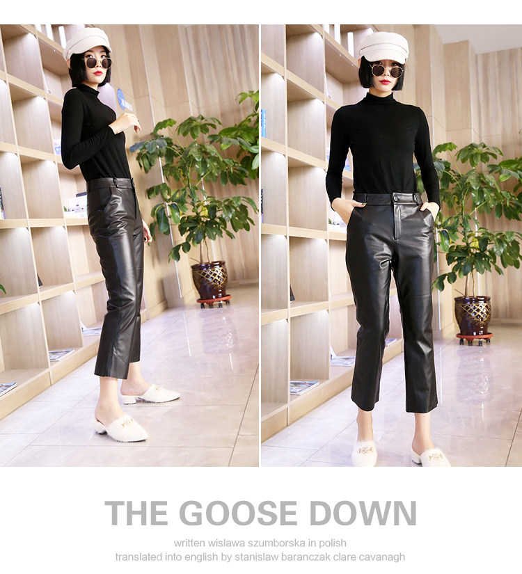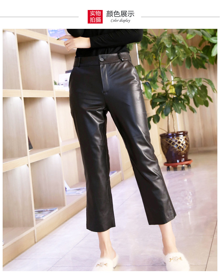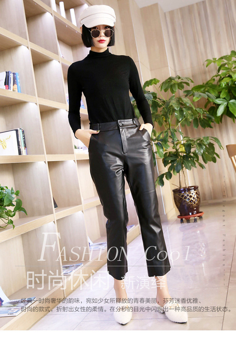 Приталенные черные штаны, европейский стиль, из натуральной кожи, свободный прямой крой