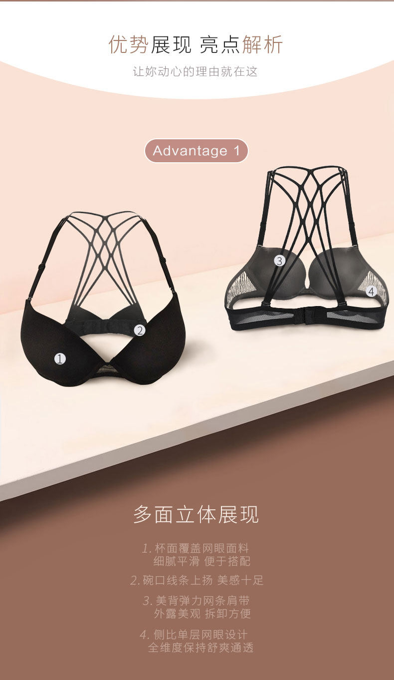 Бюстгалтер, бюстгальтер пуш-ап, увеличенная толщина, красивая спина