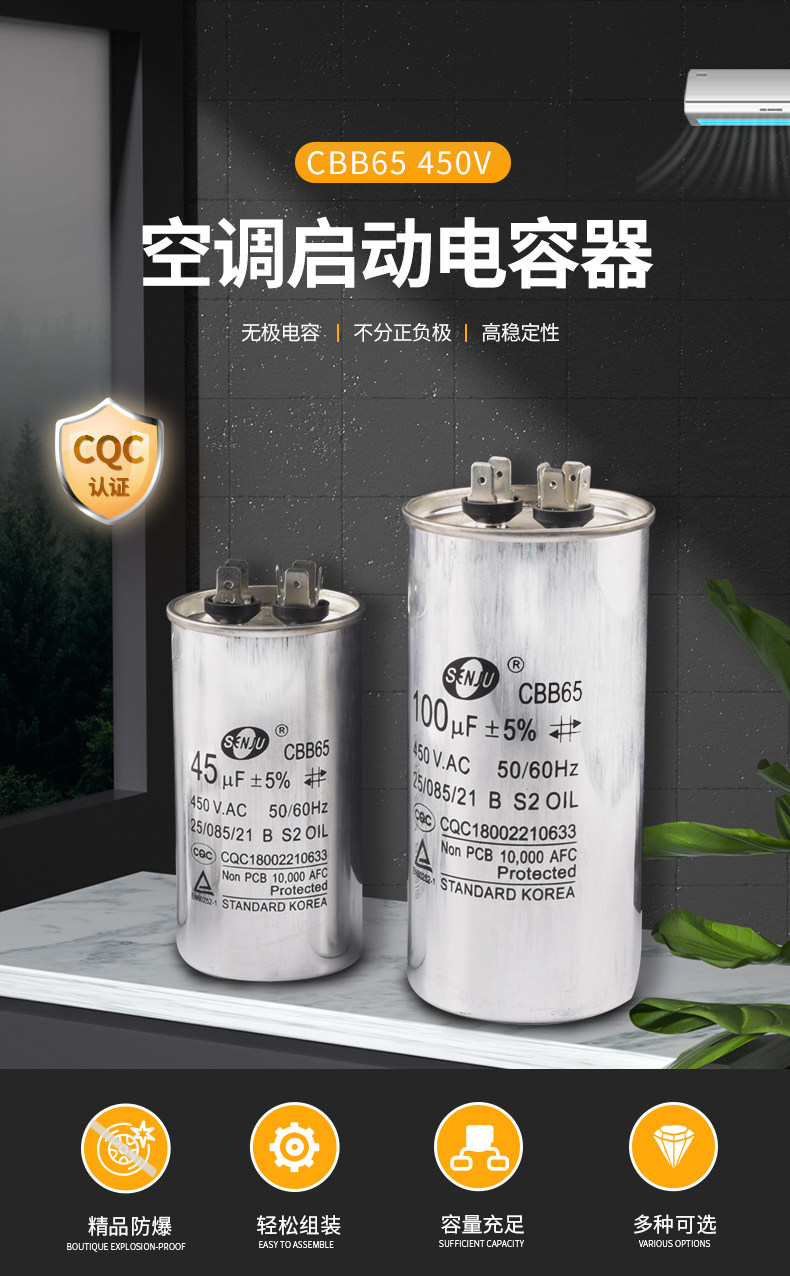 CBB65 Air -Conditioning Compressor Startup Concacitor 450V 5/20/25/30/35/40/45/50/60/70UF