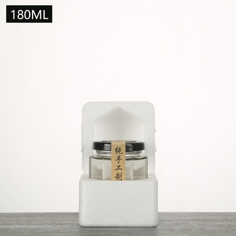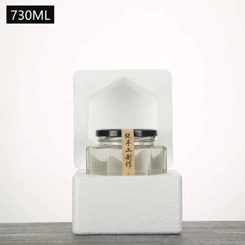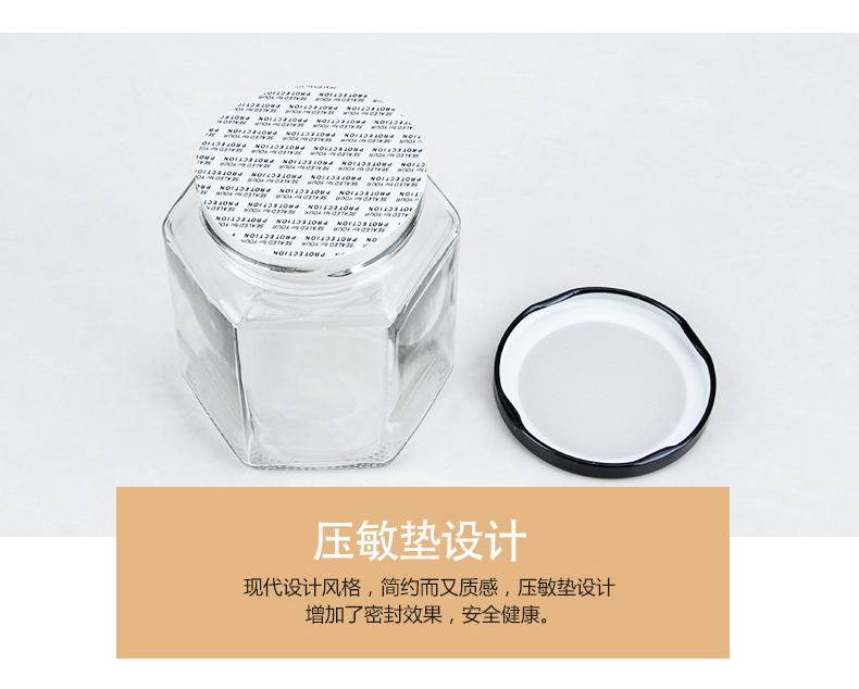 Стекло из стеклянной бутылки консервированные банки покрывают шестиугольную бесплатную доставку дома шесть бутылок с прозрачной медовой коробкой с чили установлены