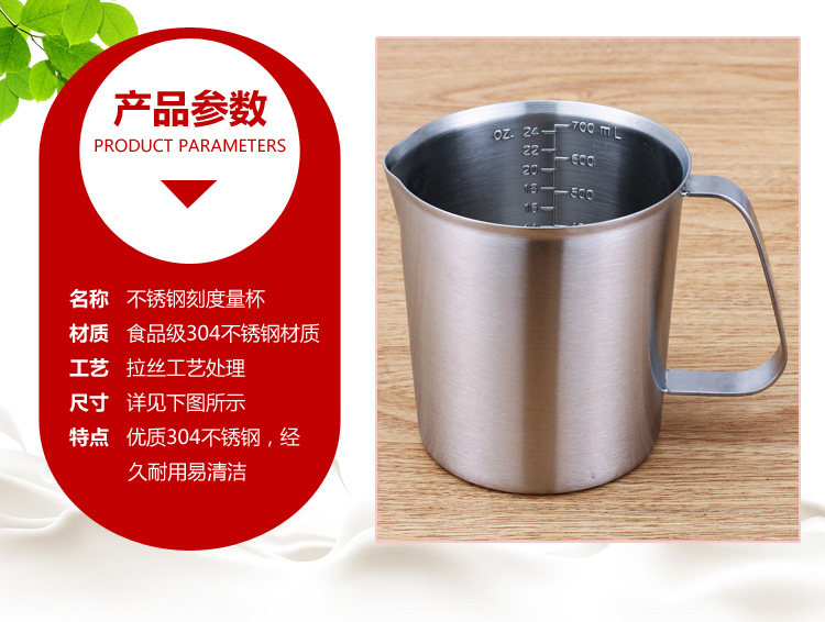 Измерительная кружка из нержавеющей стали со шкалой, кофейный мерный цилиндр