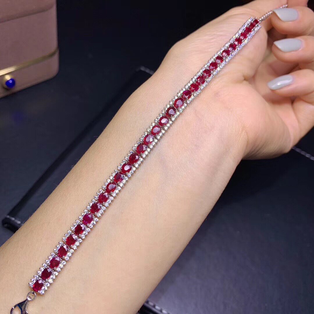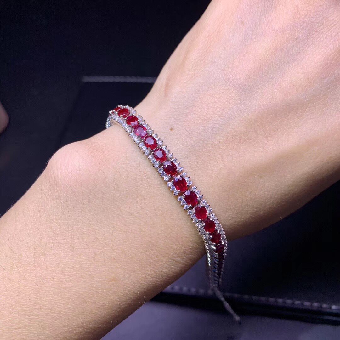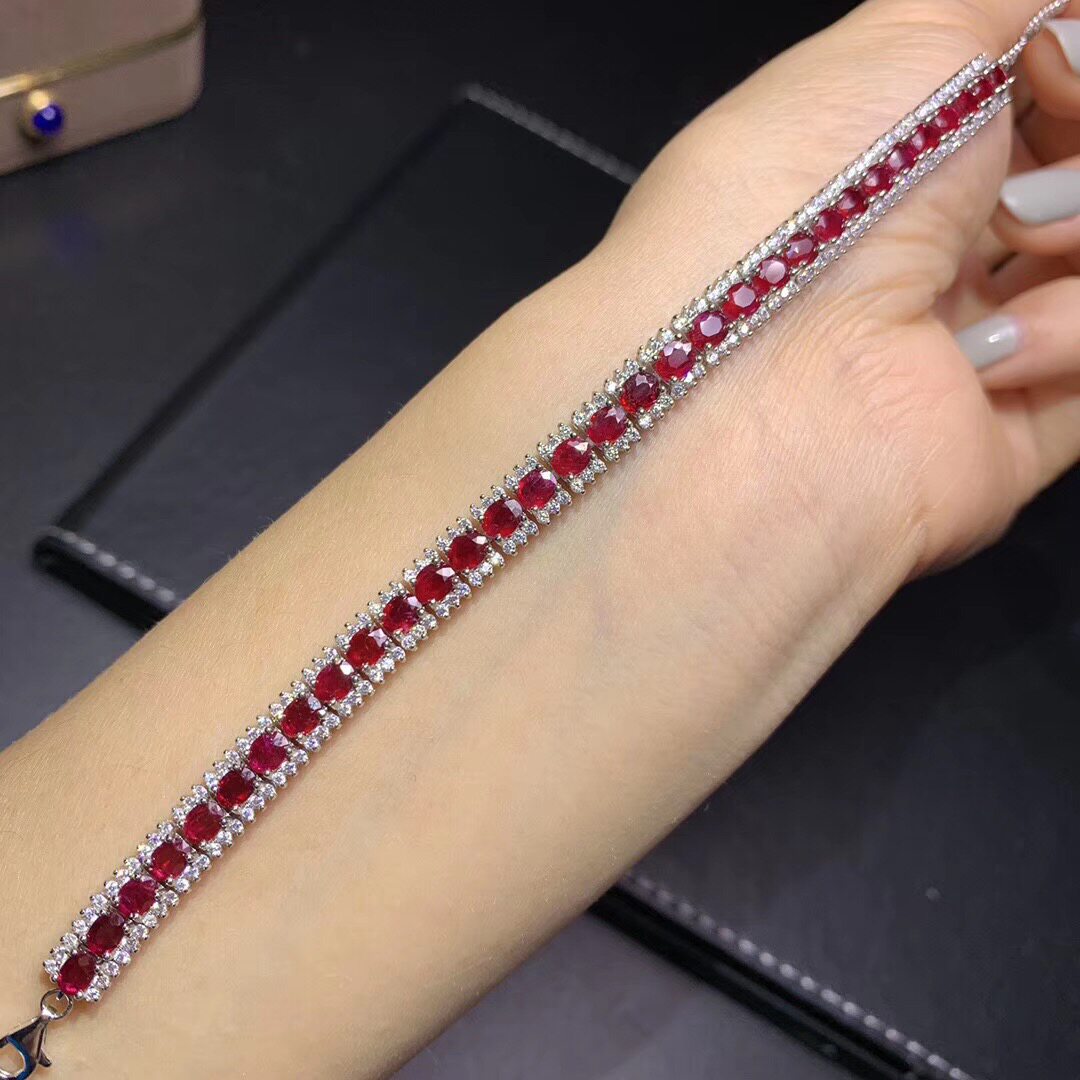 Натуральный рубиновый изысканный модный элитный классический браслет из натурального камня, серебро 925 пробы, 4mm