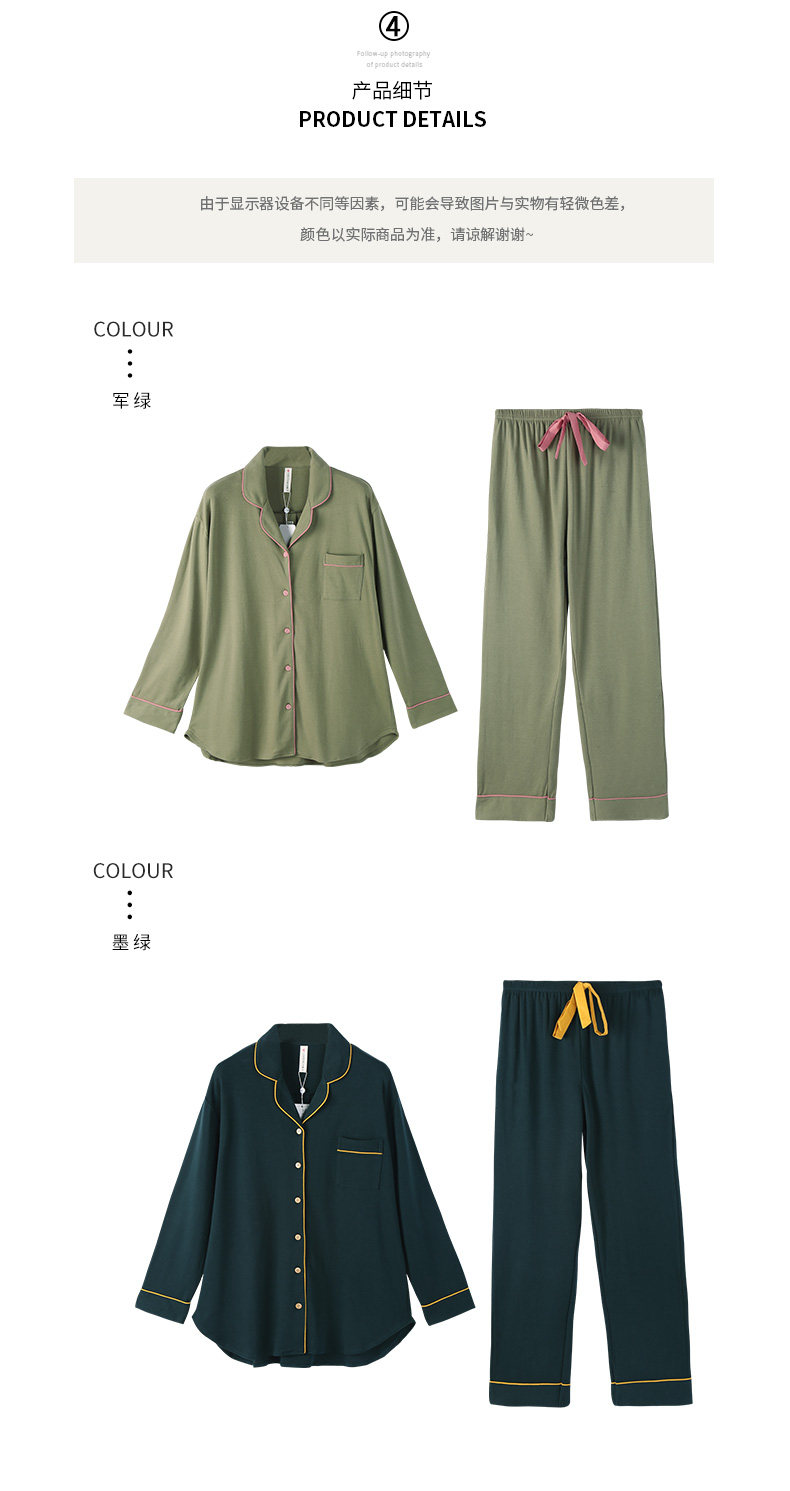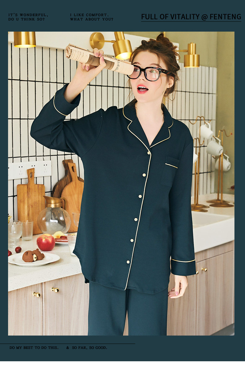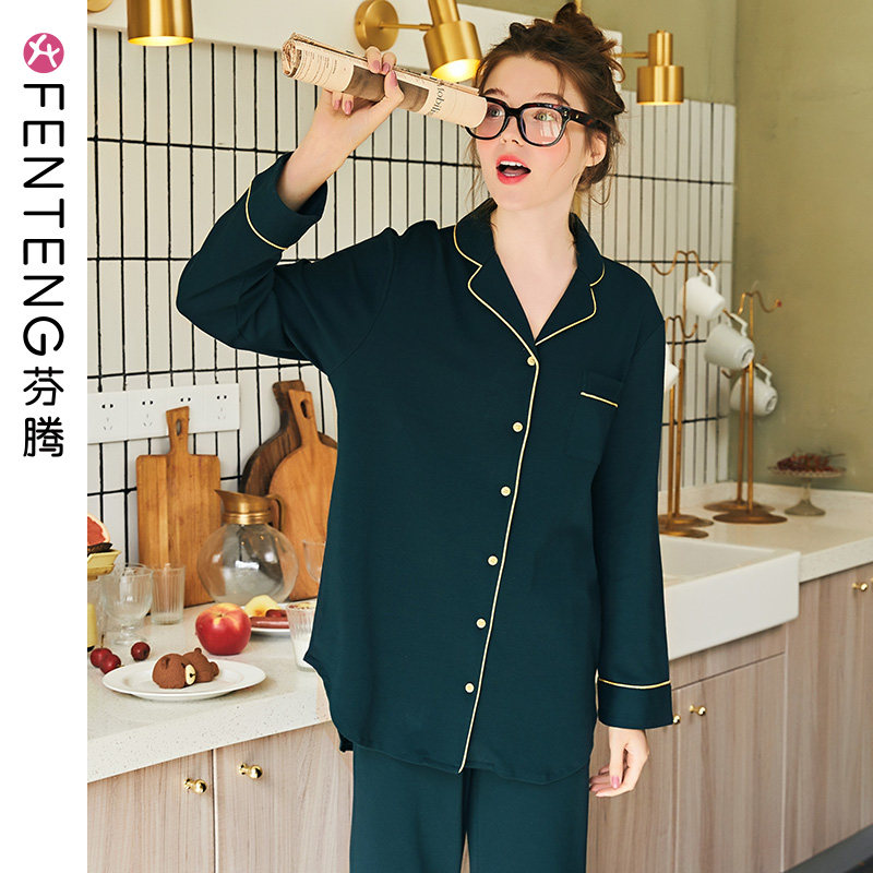 芬腾 Осенняя пижама, хлопковый лонгслив, цветной свежий кардиган, комплект, простой и элегантный дизайн, большой размер