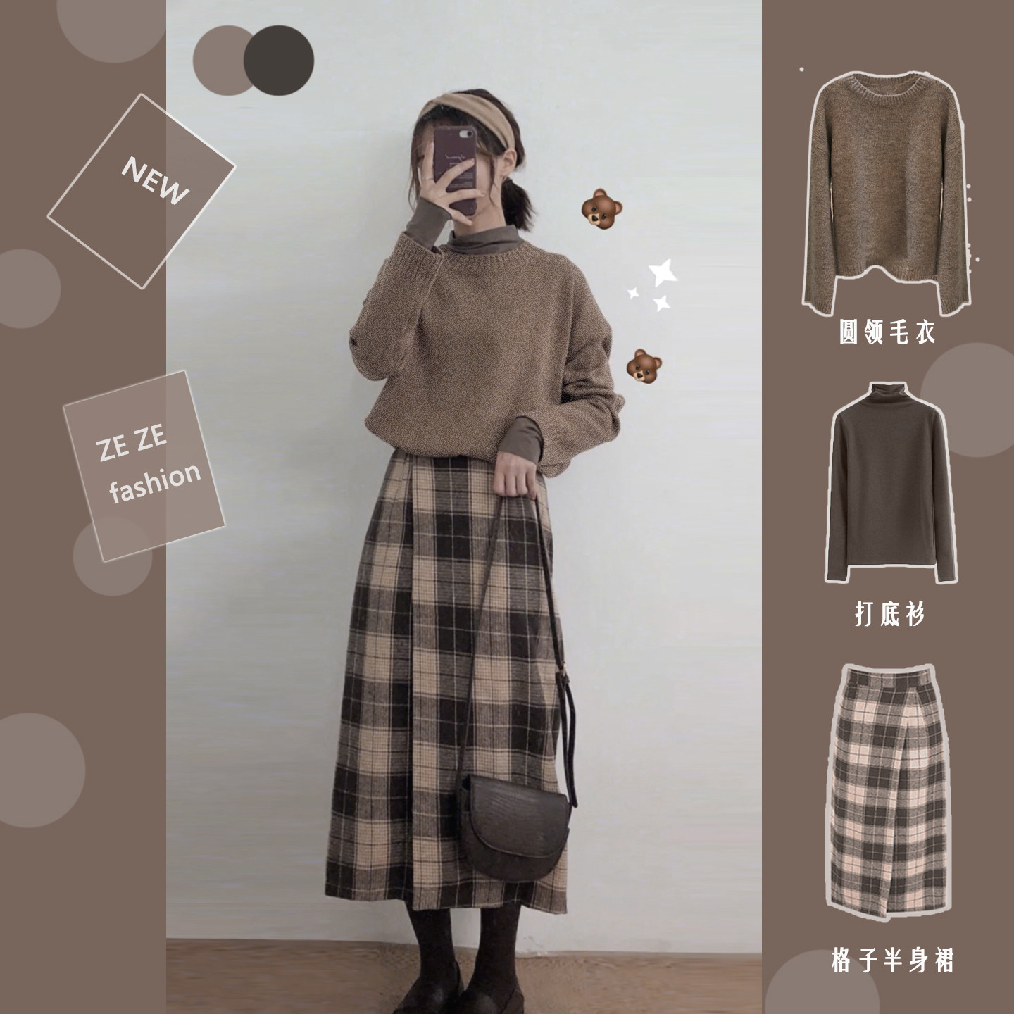 | Цвет: | Хаки свитер, Клетчатая юбка, Базовый свитер, приятная телу юбка, Одиночная рубашка |