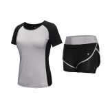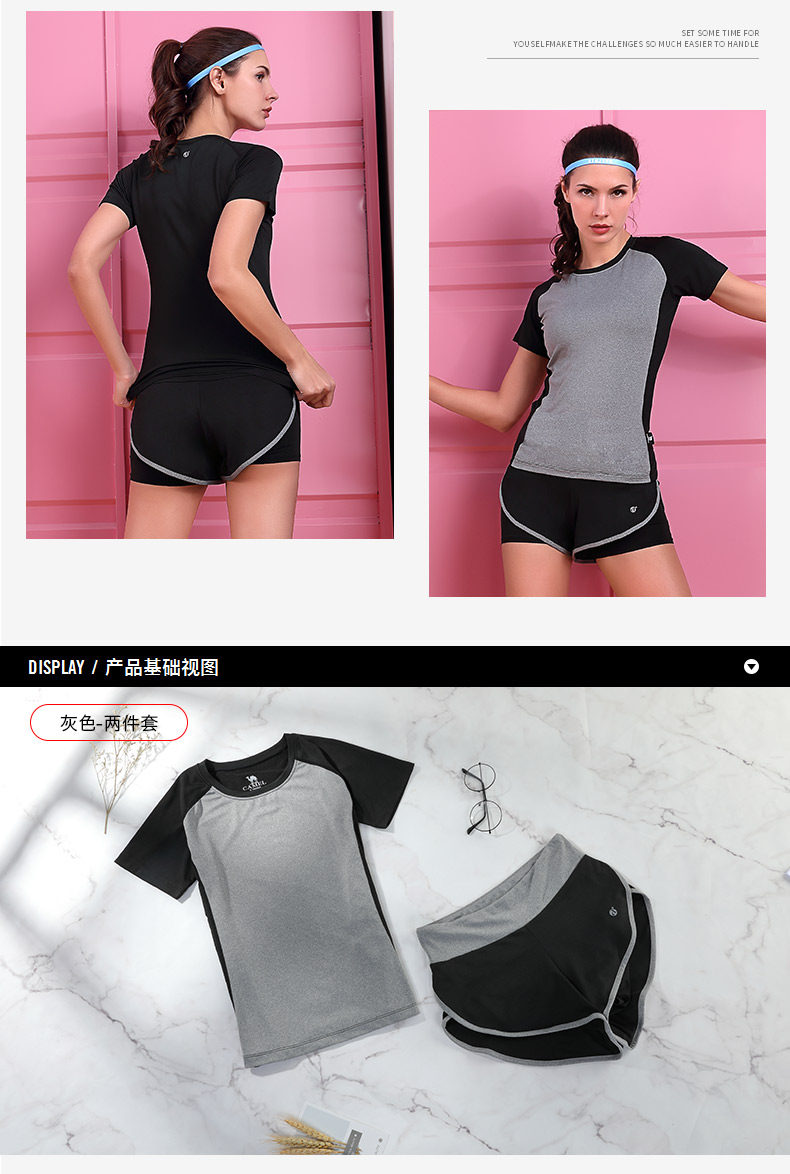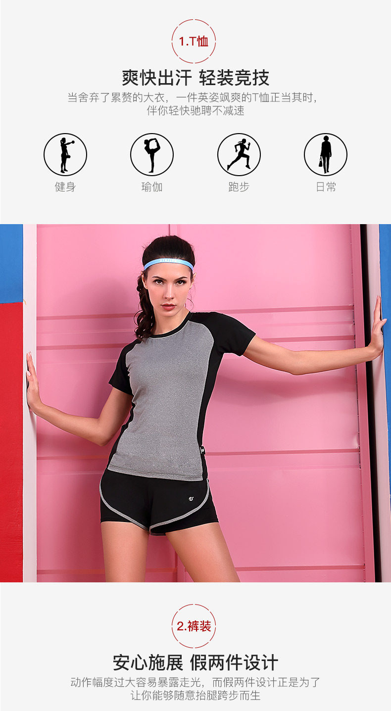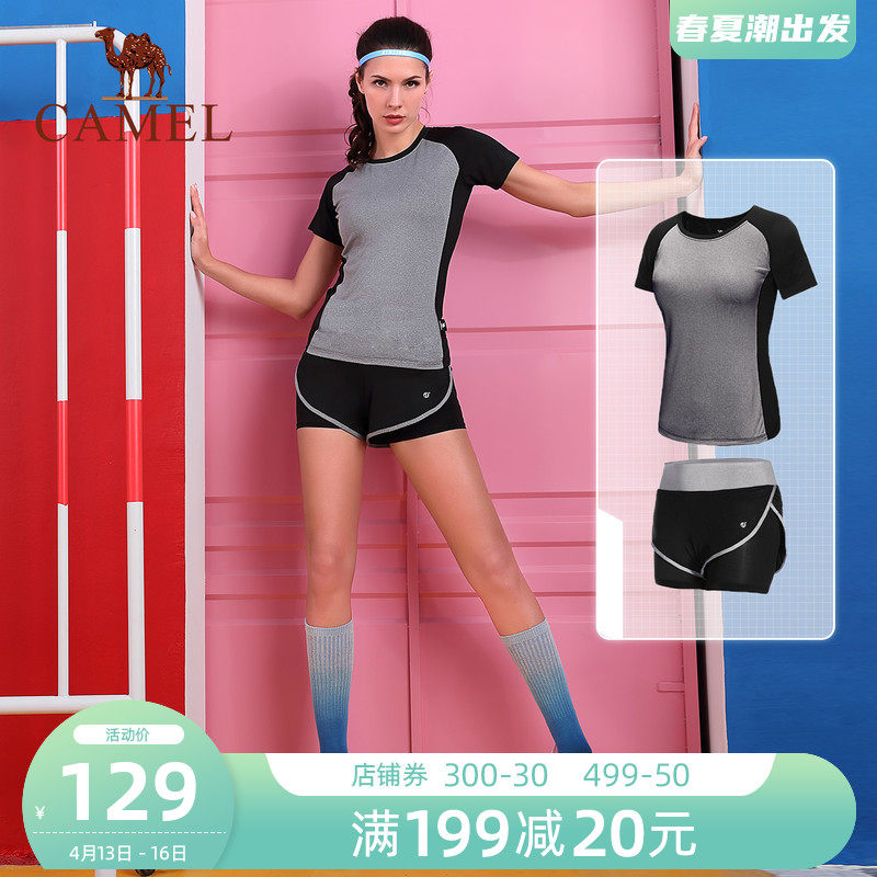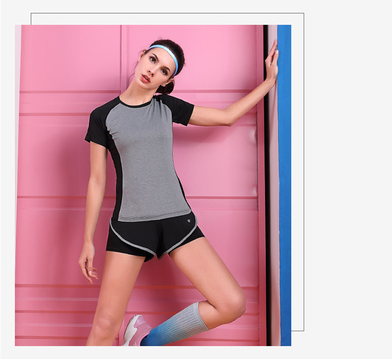 Спортивный комплект для спортзала, футболка с коротким рукавом, одежда для йоги, для бега, круглый воротник, быстрое высыхание