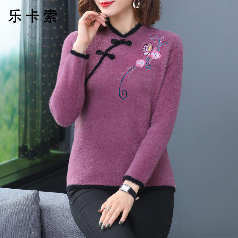Осенний бархатный демисезонный базовый приятный телу свитер, китайский стиль, 2020, для среднего возраста