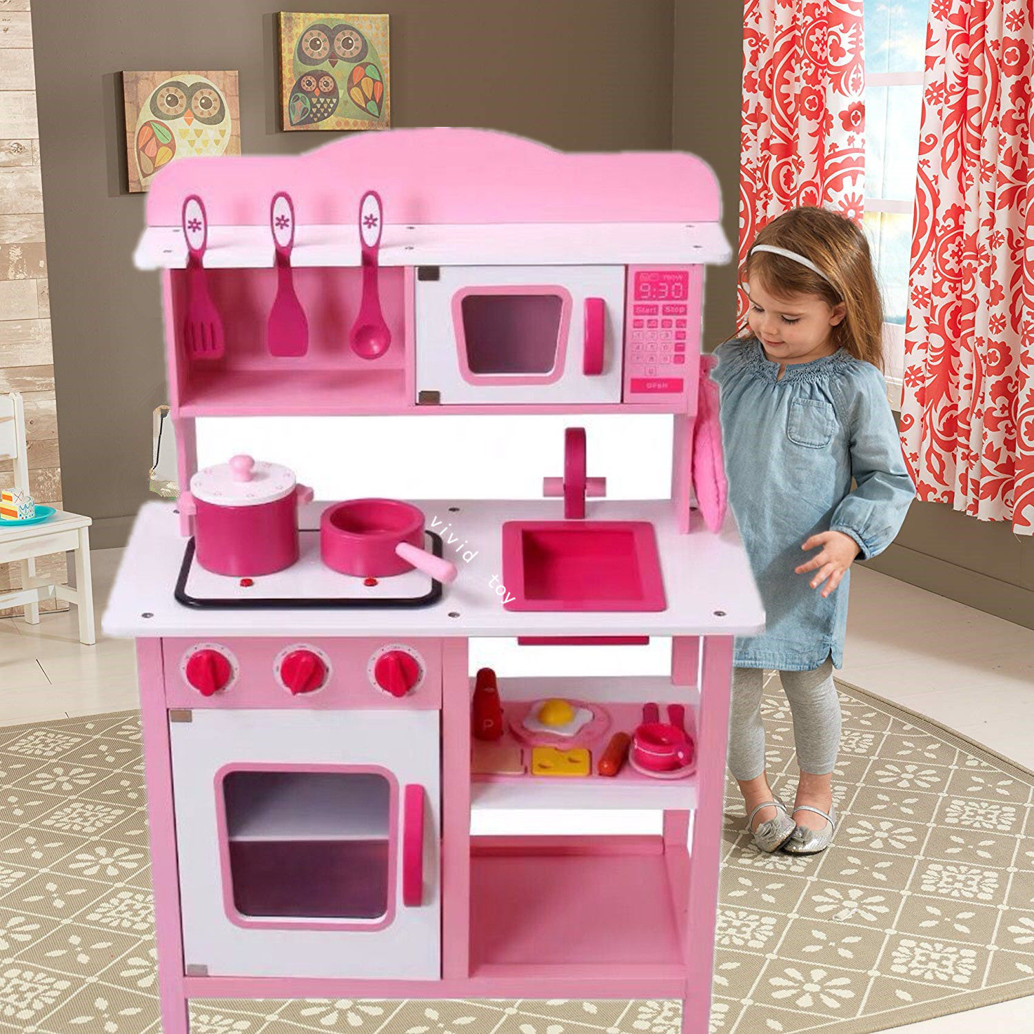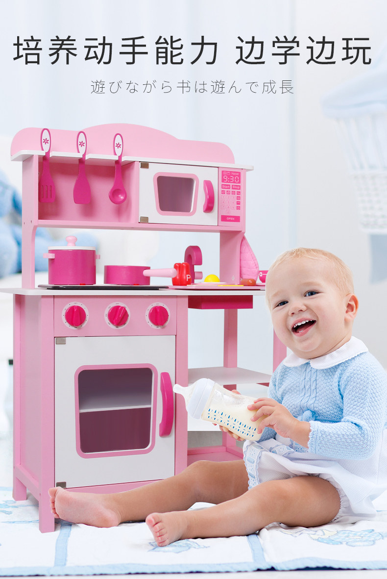 Семейная детская игрушка со светомузыкой, реалистичный деревянный детский комплект, плита для мальчиков и девочек