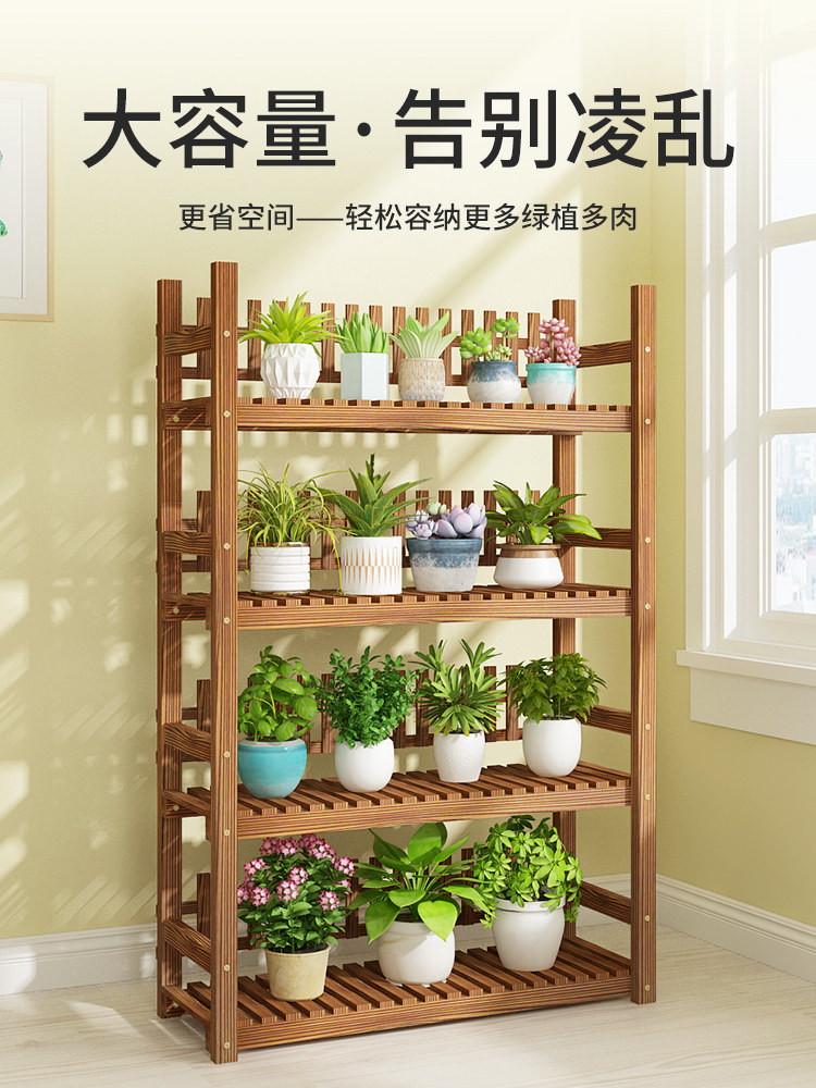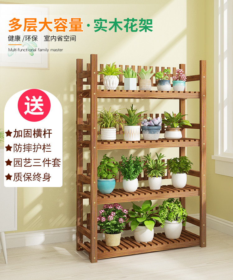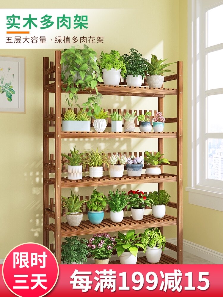 Цветочная стойка Цветочная горшка посвященная цветочная полка гостиная простая крытая балкон многослойная полка с твердым деревом