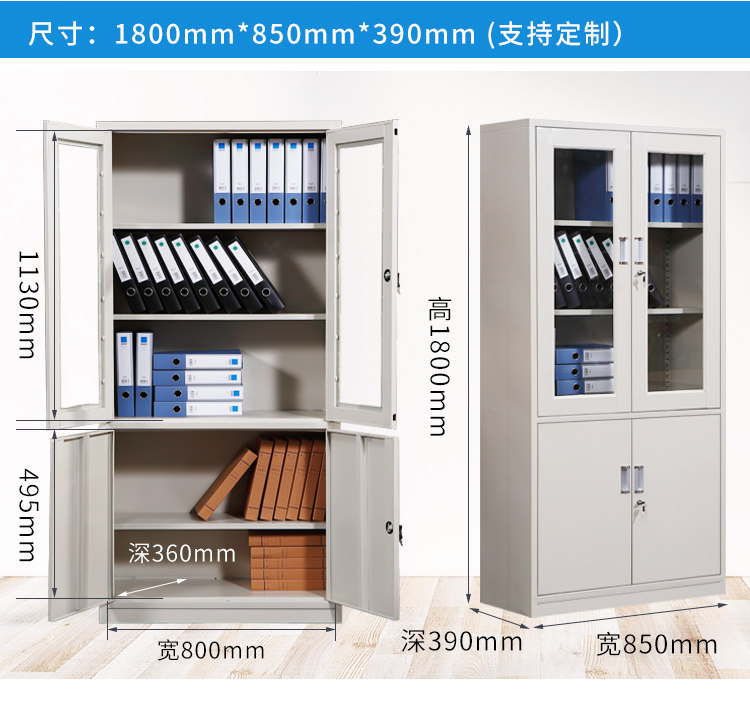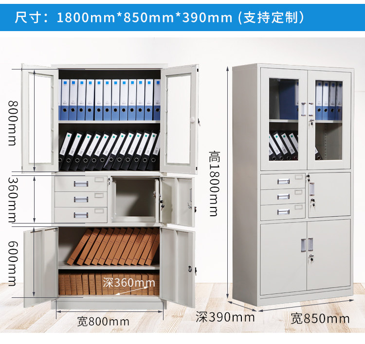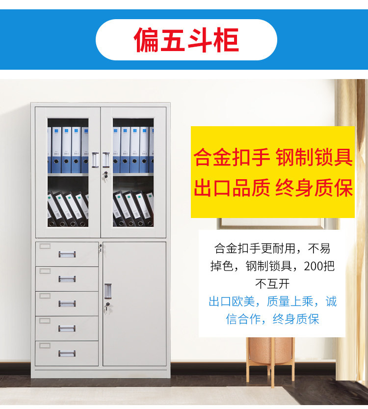 Офисный файл Iron Cabinet с ящиком стеклянной дверной дверь.