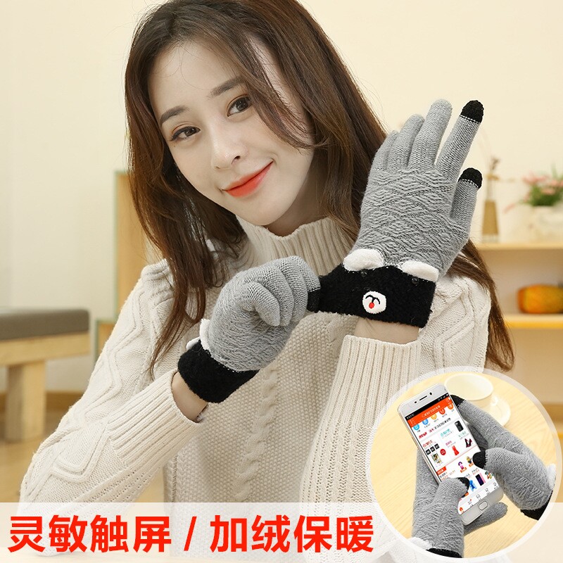 Перчатки, утепленный милый бархатный комплект, лыжный удерживающий тепло нескользящий мобильный телефон, сенсорный экран, в корейском стиле