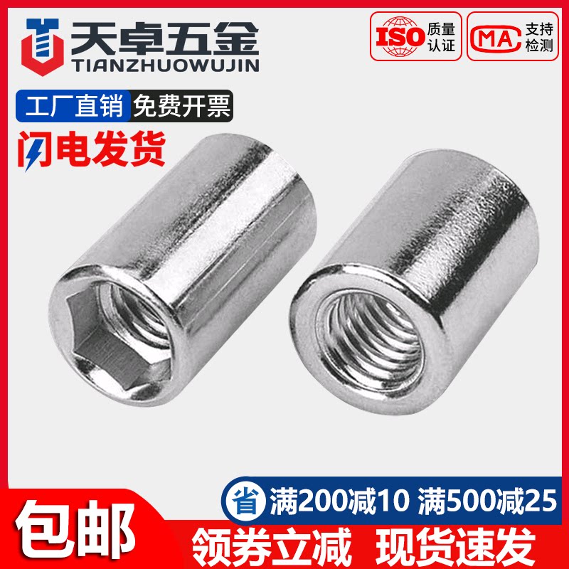 304 гайка стержня из нержавеющей стали, круглый шестиугольный цилиндрический гайка, пневматическая гайка M5M6M8-M12