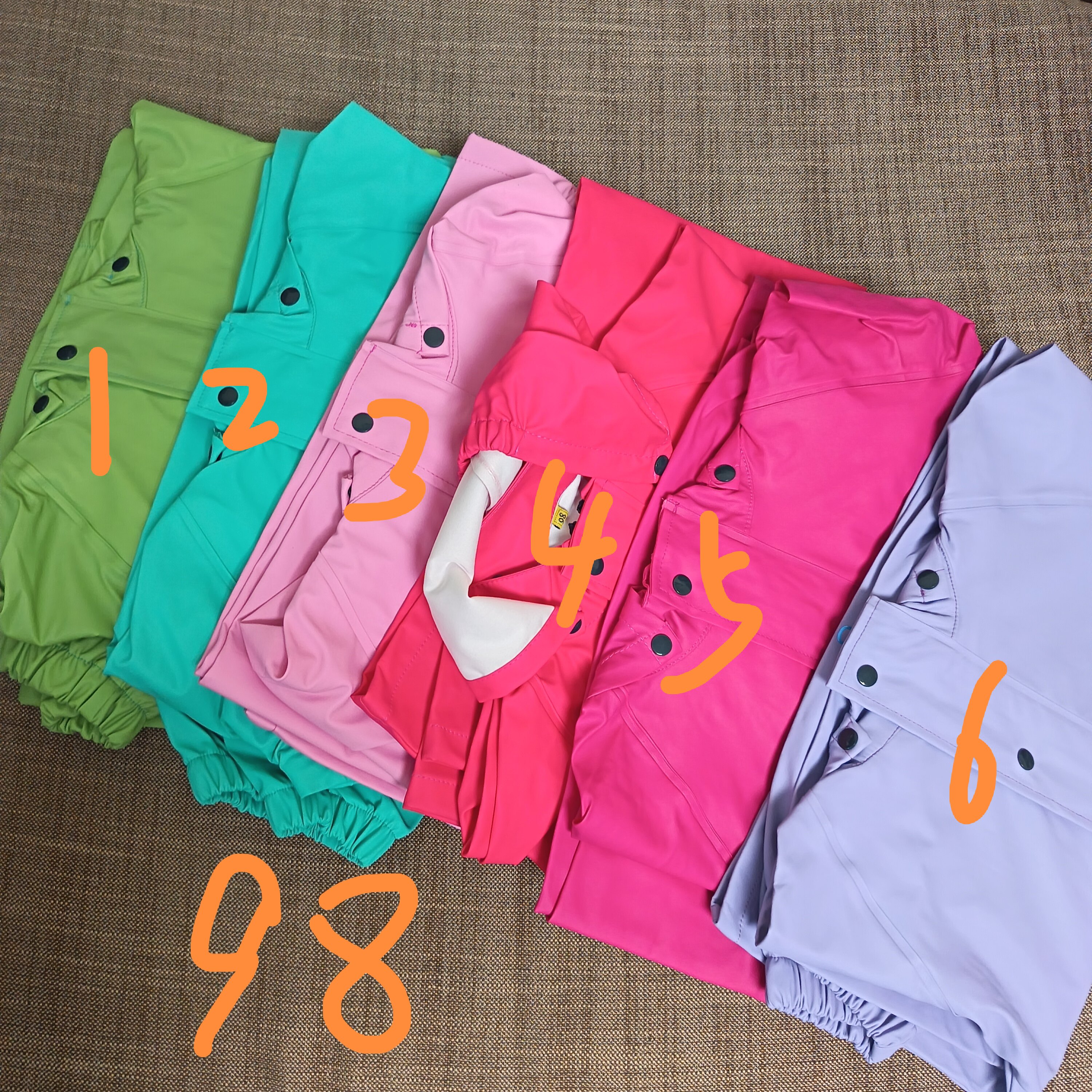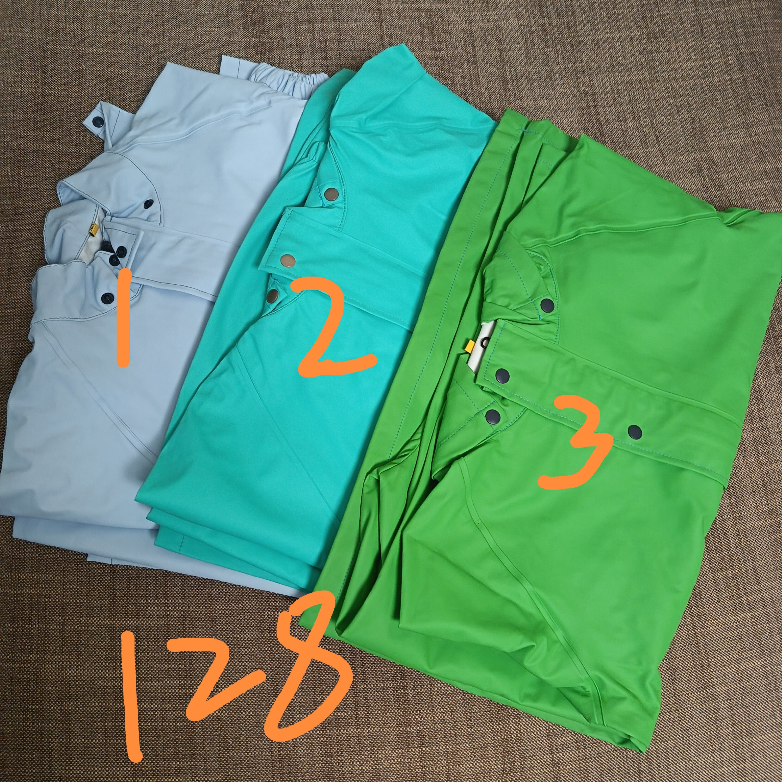 Список дефектов, один детский плащ и штаны из полиуретана, различные стили, можно сочетать с полным комплектом.