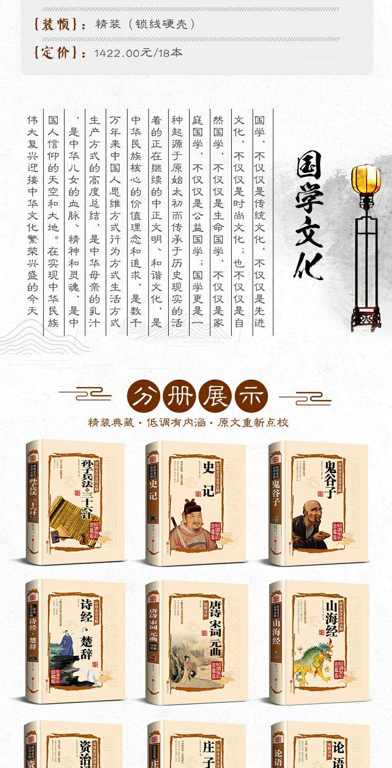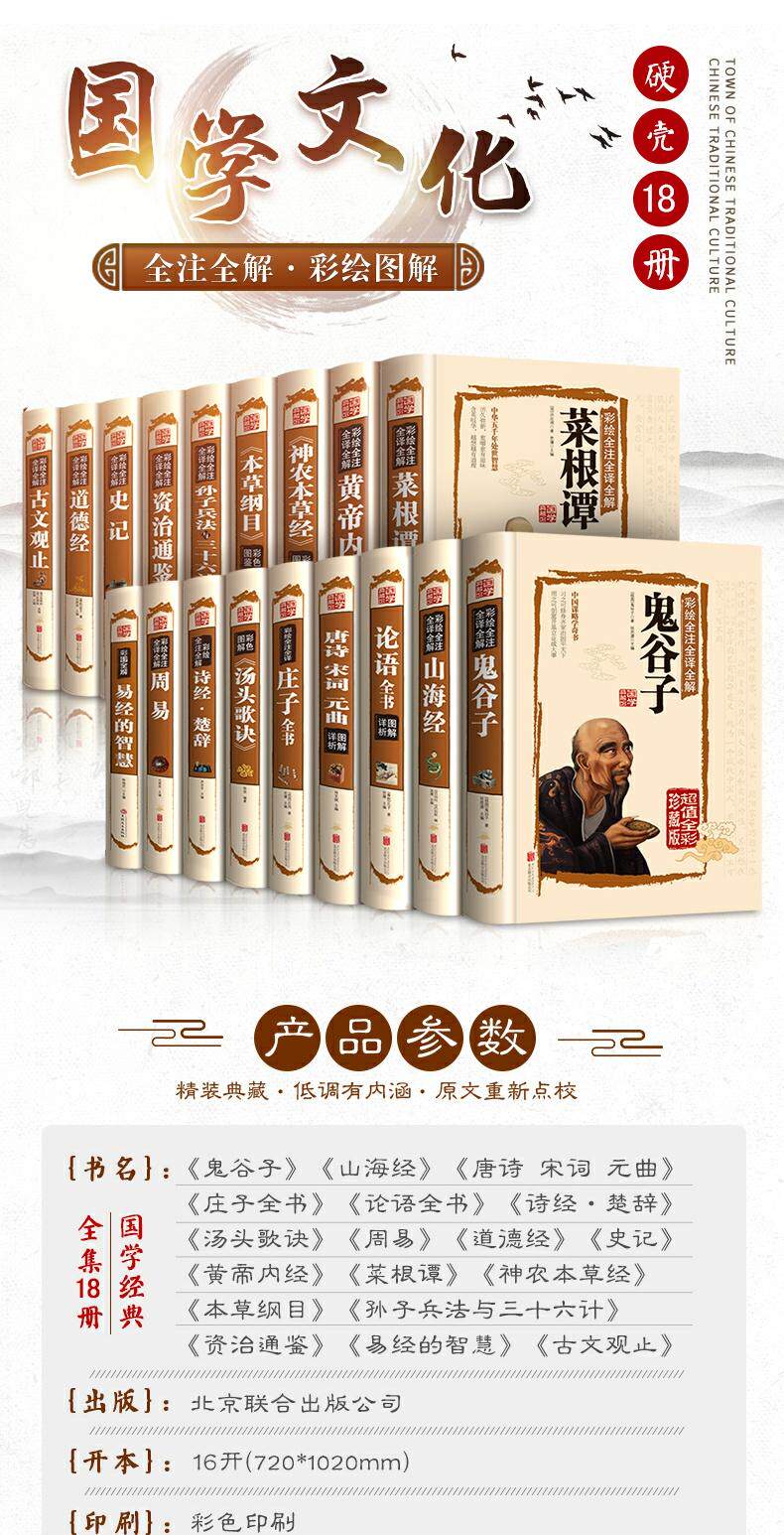 Китайская классическая книга Полный набор анализа анализа дао Te te Ching Zhouyi Guiguzi История Easy Sutra 18 томов китайского классического в твердом переплете Полный набор Полная версия оригинального оригинального перевода книги.