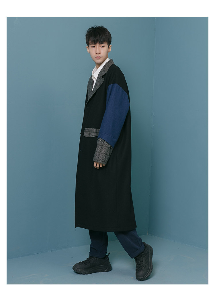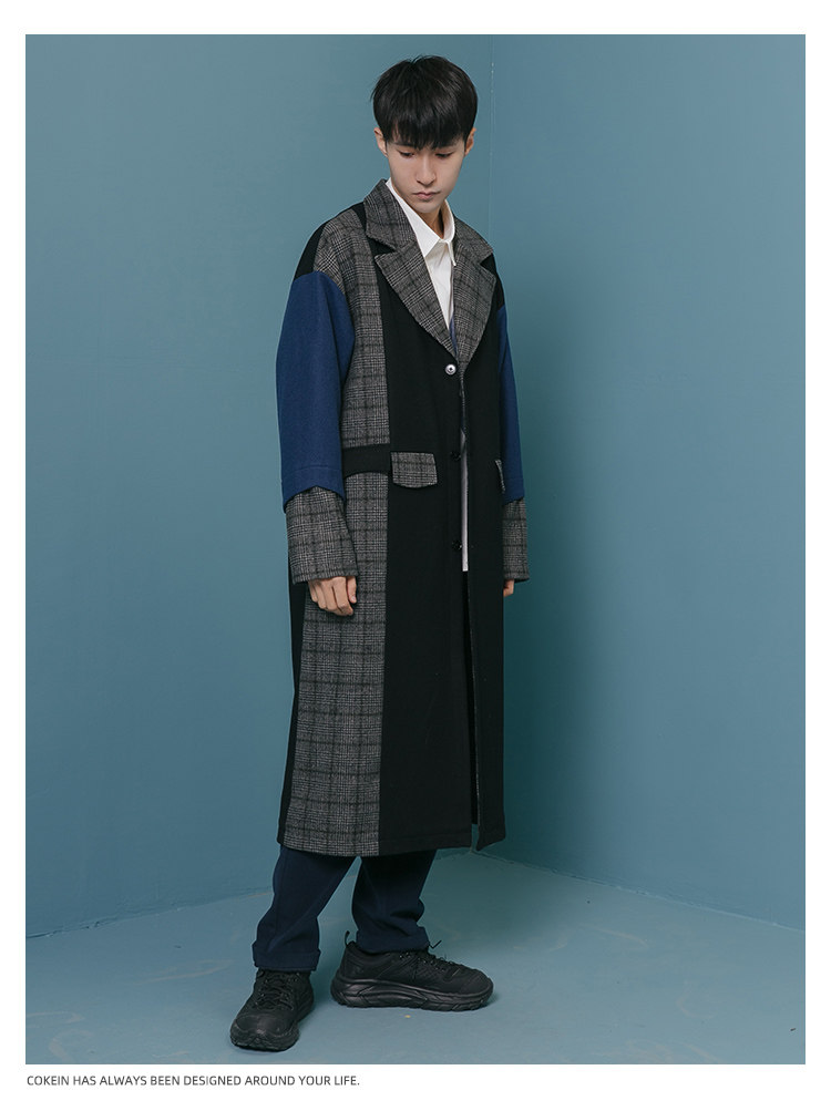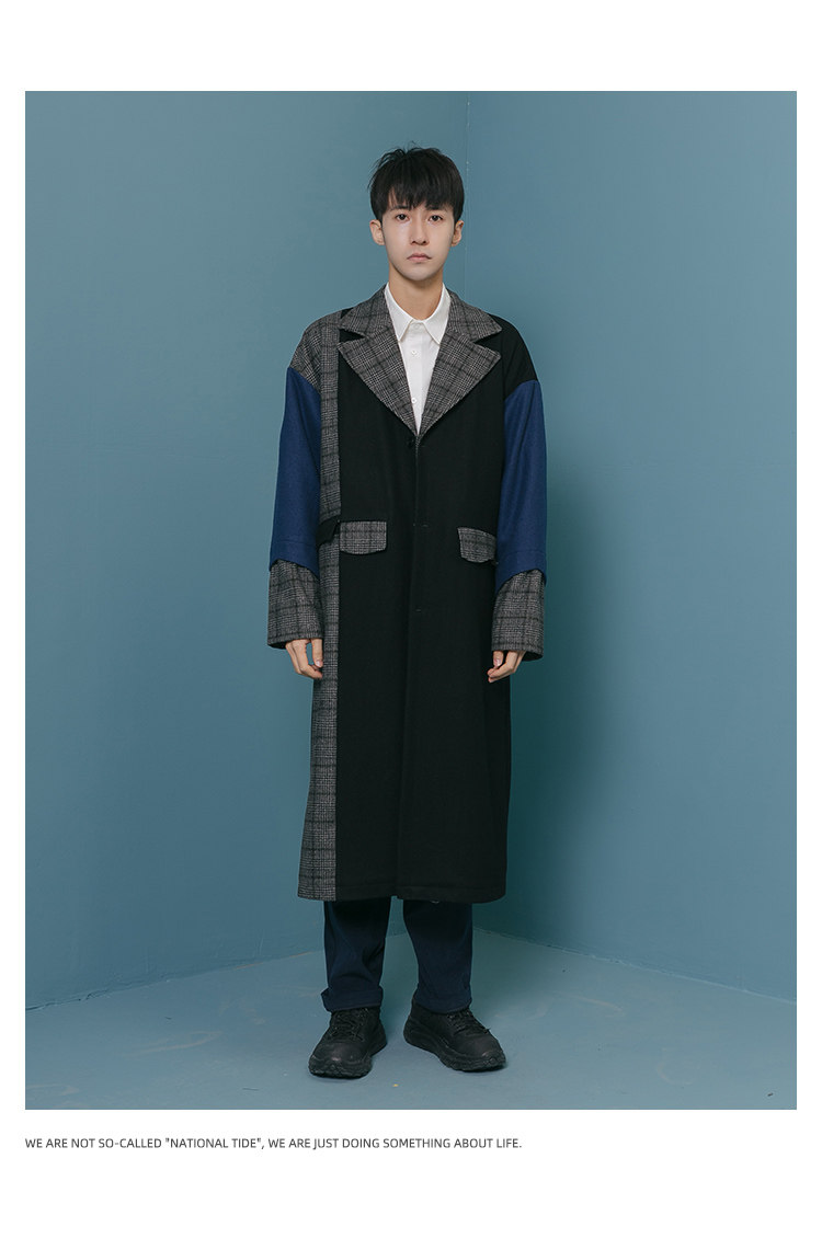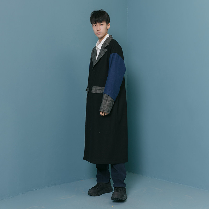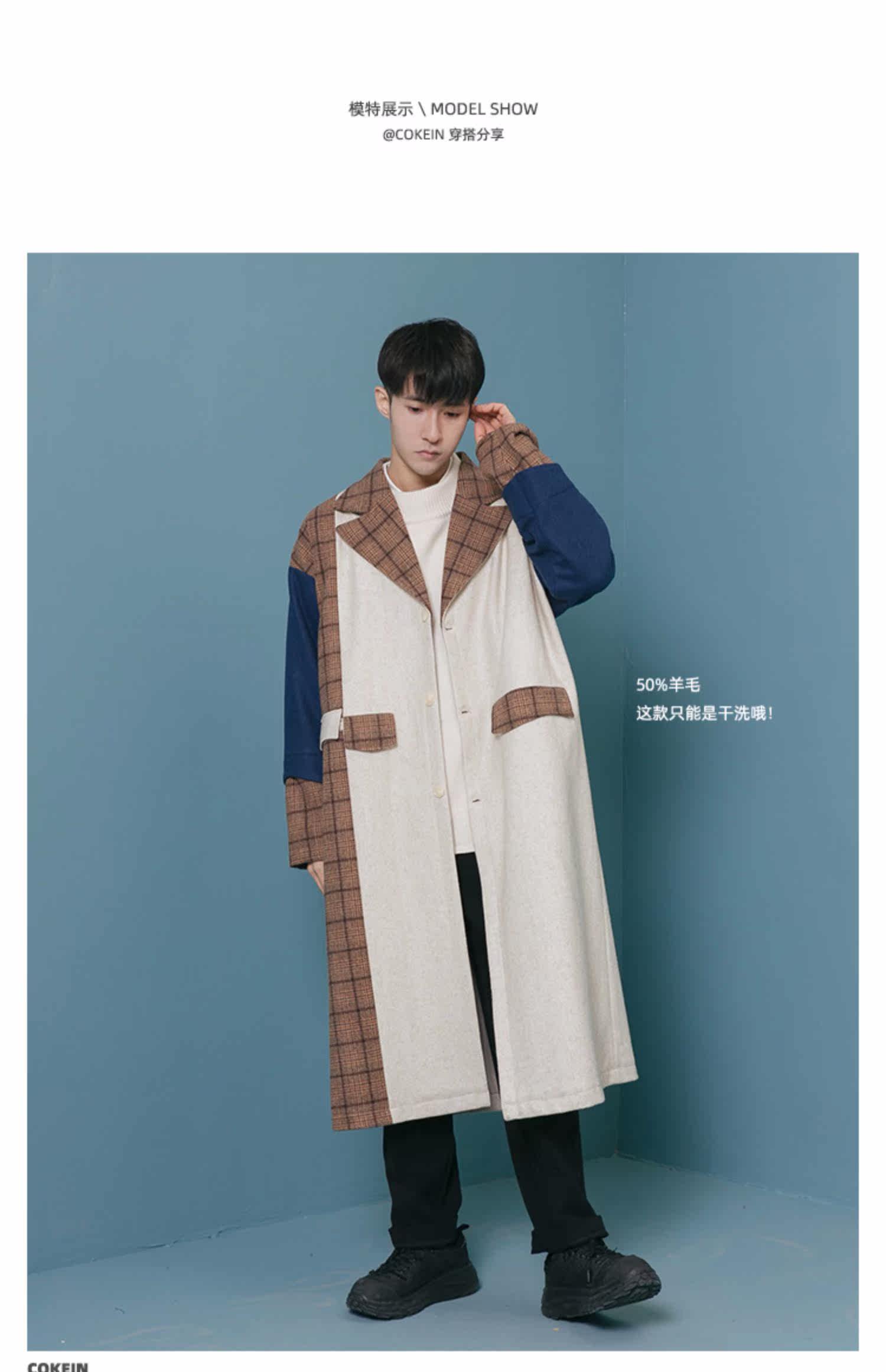 Оригинальное дизайнерское шерстяное пальто, трендовый кашемировый плащ для отдыха, мужская куртка, средней длины, в корейском стиле