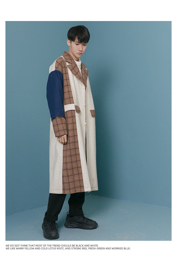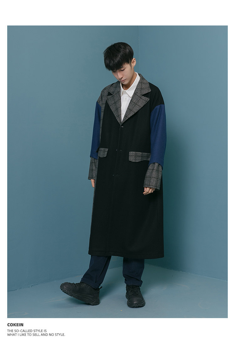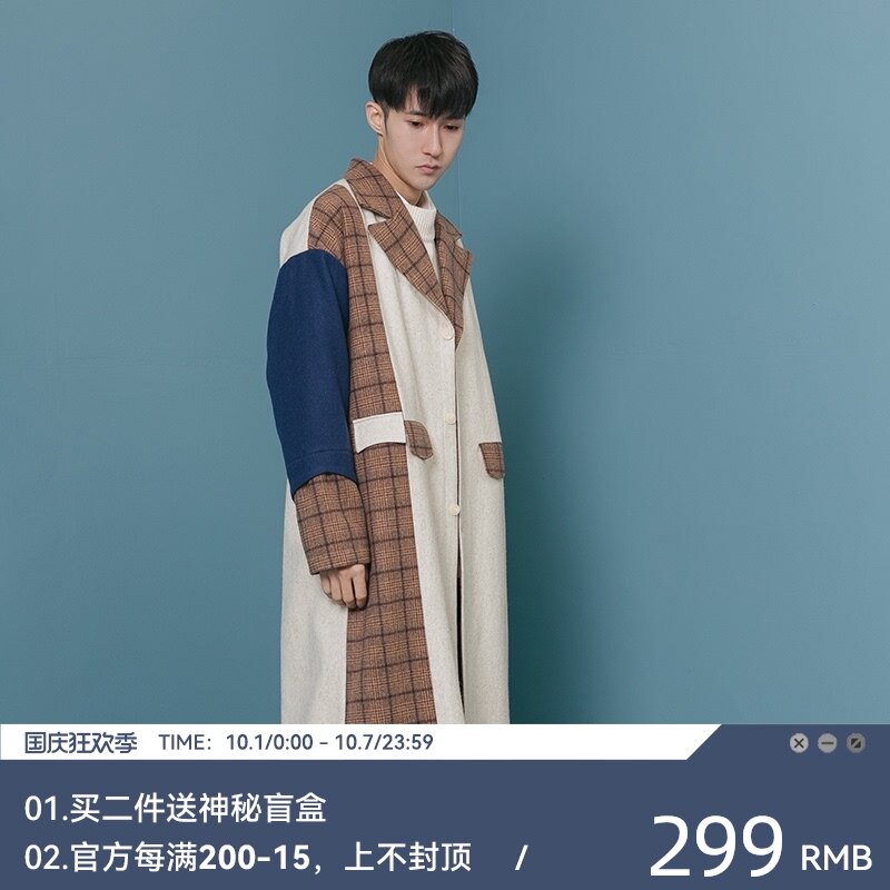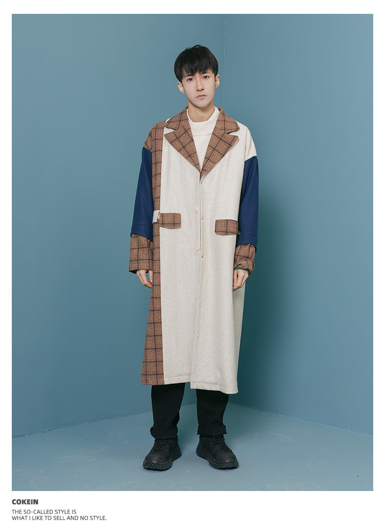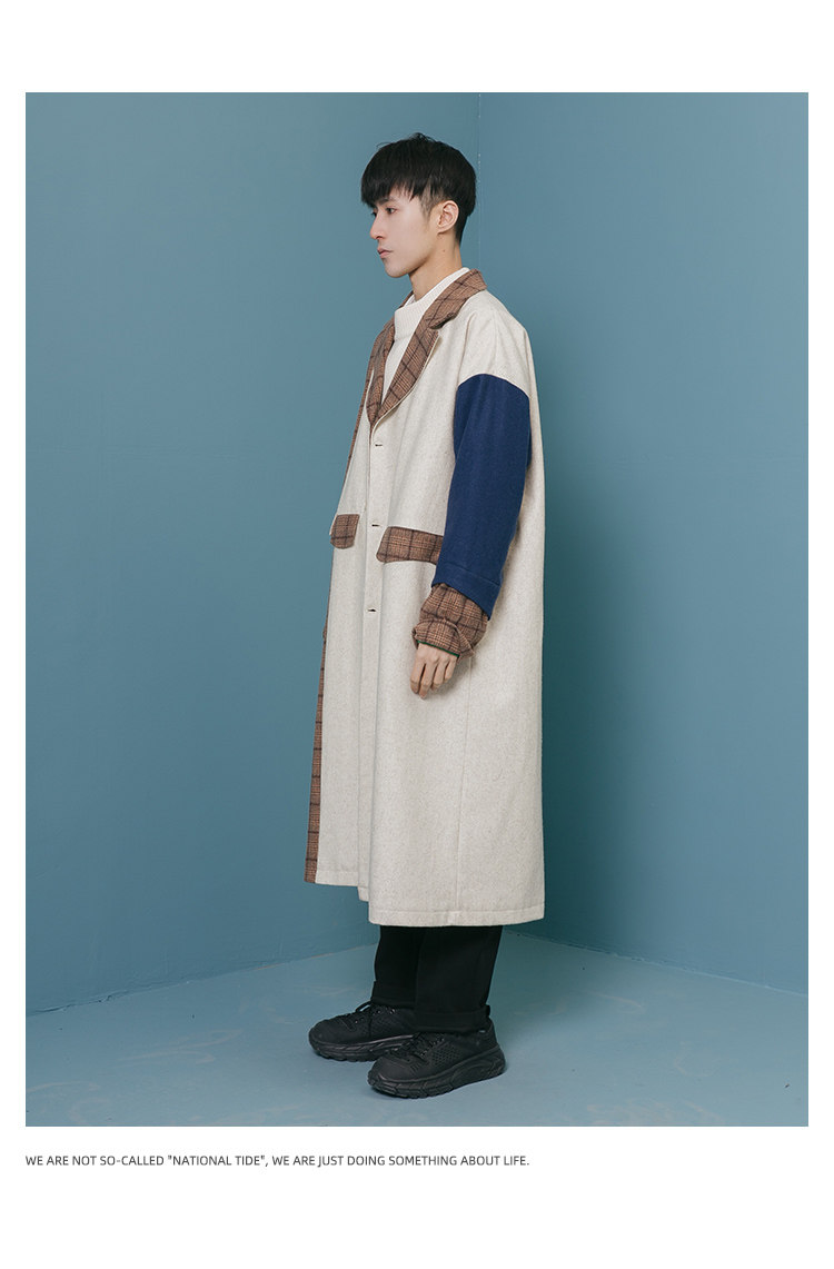 Оригинальное дизайнерское шерстяное пальто, трендовый кашемировый плащ для отдыха, мужская куртка, средней длины, в корейском стиле