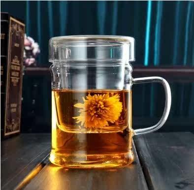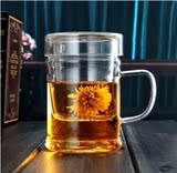 Стеклянная чайная чашка для офиса, ароматизированный чай, комплект, фильтр, увеличенная толщина, 3 предмета