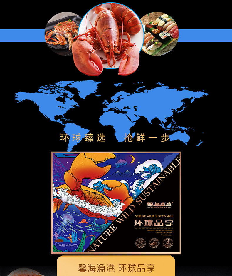 馨海渔港 Подарочная коробка морепродуктов морепродукты Подарочные пакет глобальные продукты наслаждаются 3998 типами около 6200 г фестивальной группы Подарок покупки подарок