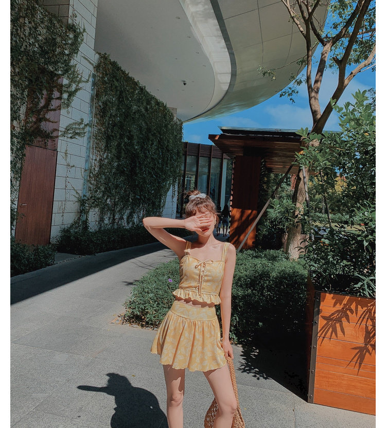 Купальник, милый раздельный желтый комплект, коллекция 2021