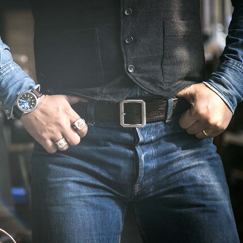 Ретро латунный серебряный джинсовый кожаный ремень ручной работы, стиль, из натуральной кожи