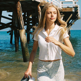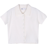 Черный цветной короткий трикотажный свитер, высокая талия, короткий рукав, облегающий крой, воротник поло