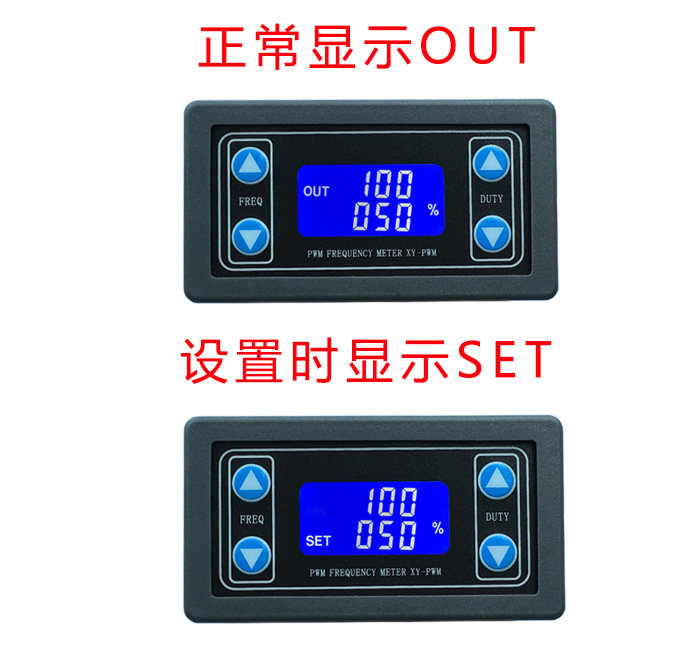 Модуль есть4Независимые ключи используются для установления частоты и соотношения обязательств, поддерживая краткосрочное нажатие (увеличение или уменьшение одного блока) и длительного давления (быстрое увеличение или уменьшение). Это очень просто. Установите автоматическое сохранение после установки параметра.