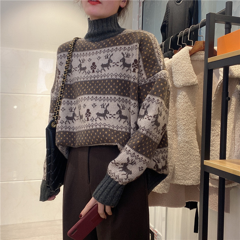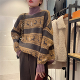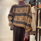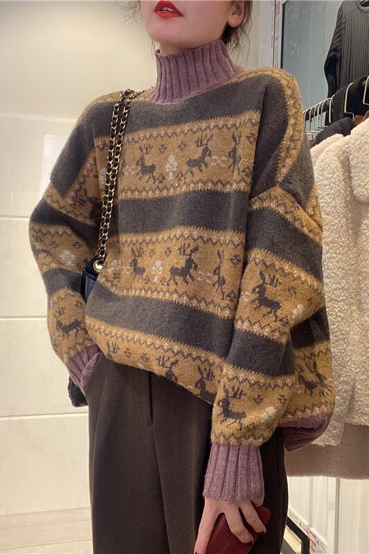 Весенний ретро мягкий свитер, трикотажный лонгслив, нарукавники, коллекция 2021, тренд сезона, высокий воротник, свободный крой