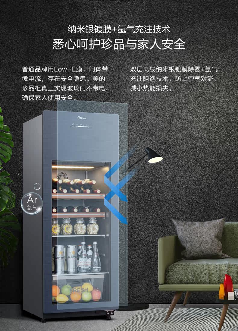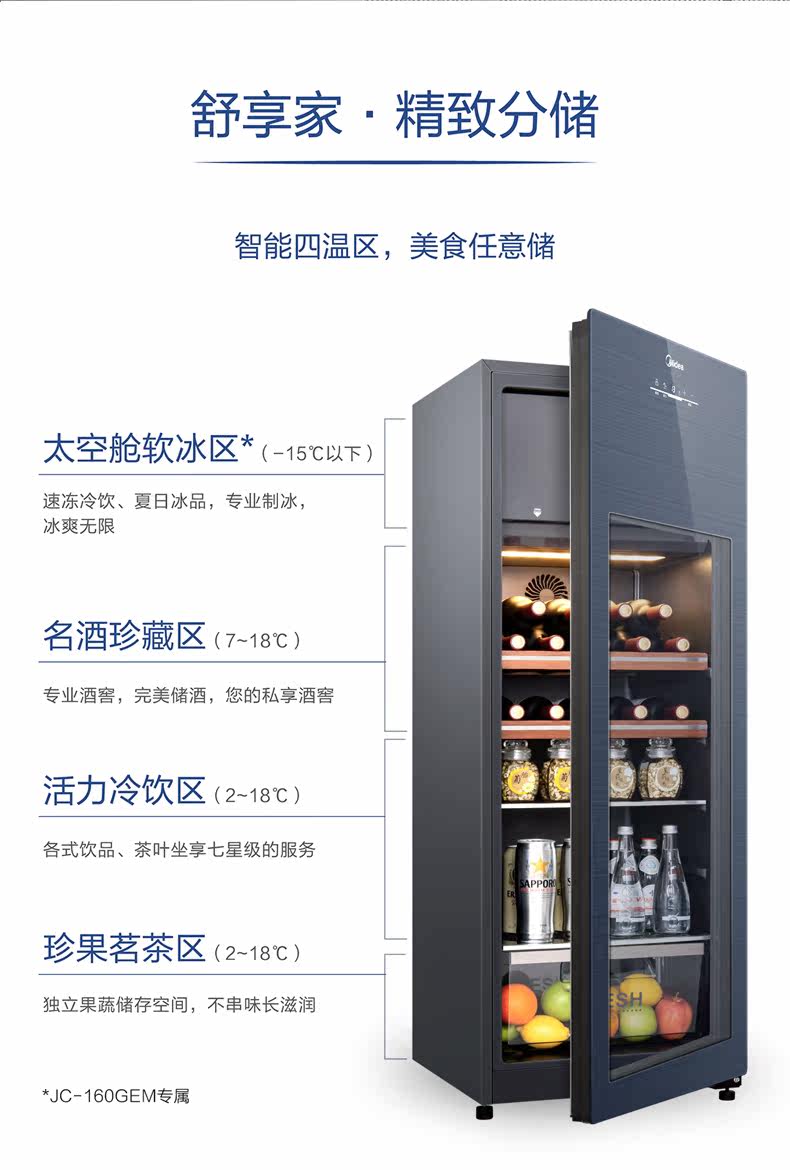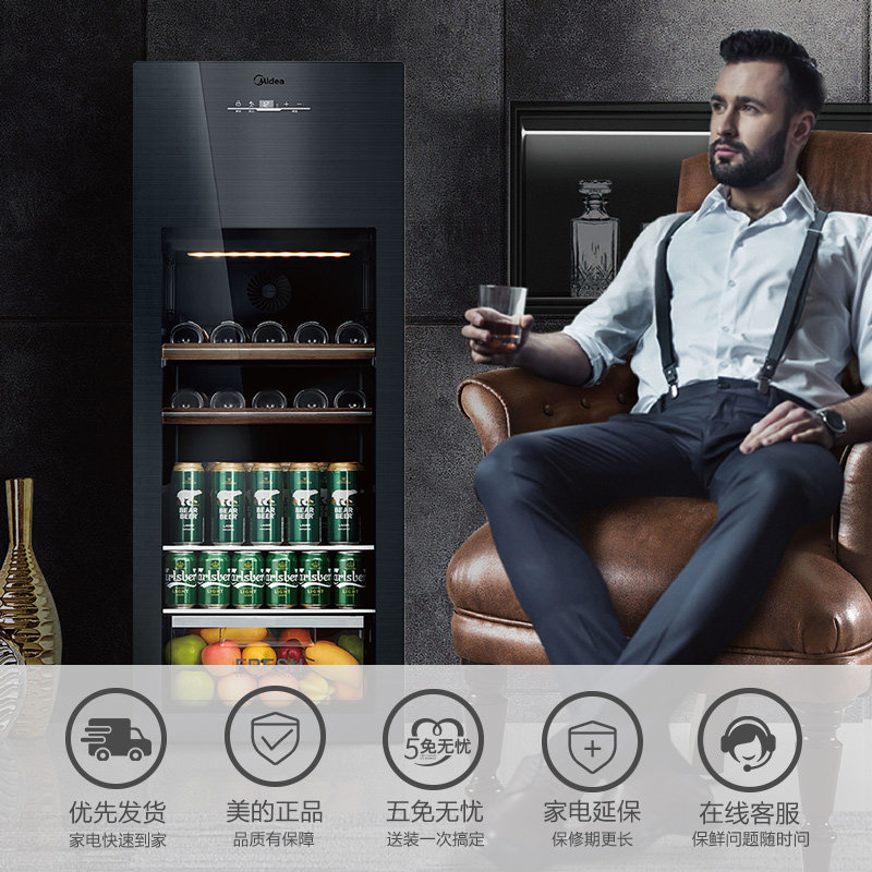 Midea/美的 JC-160GEM холодильник Bing Bar Home Living Room Небольшой прозрачный холодильник офис винный шкаф