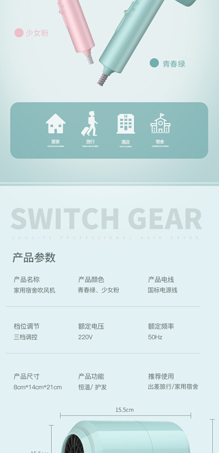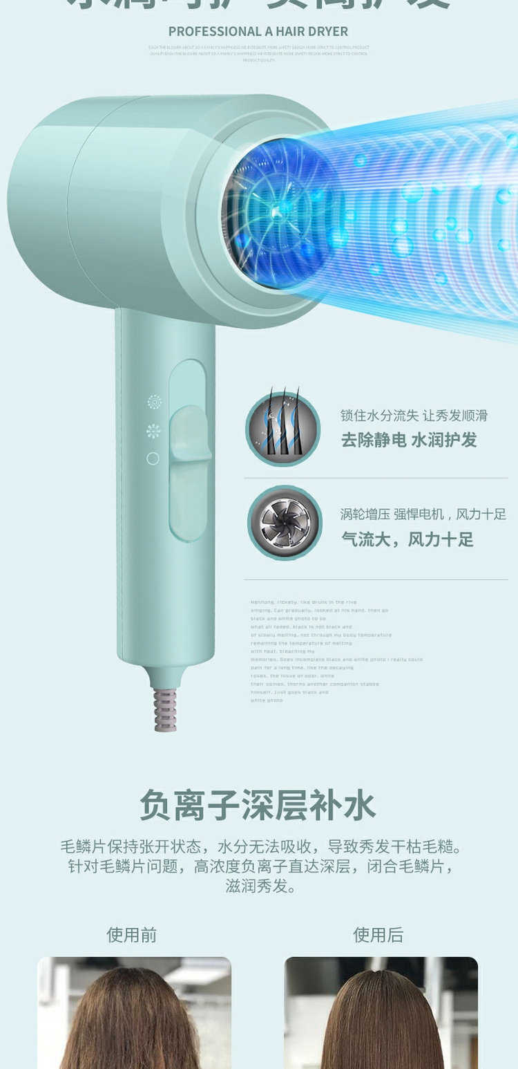 Волосовая палатная мощность отрицательная ионная фен в общежитие Студент Студент немой Нетянный красный фар -магазин защищает электрические челки