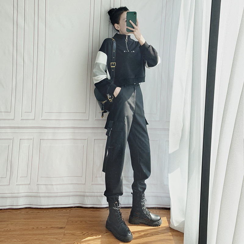 Модный летний комплект, короткая толстовка, штаны, в западном стиле