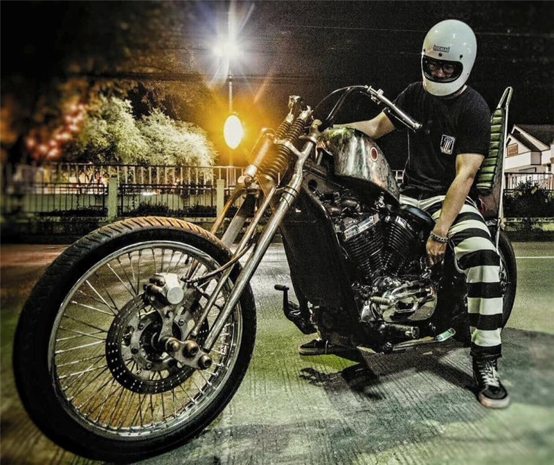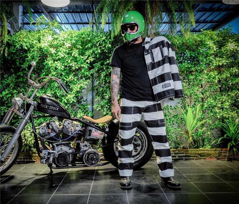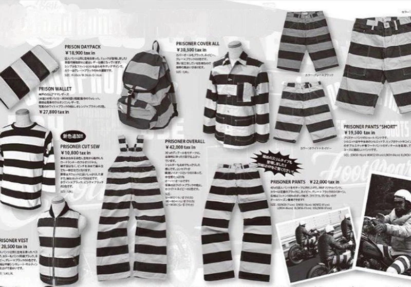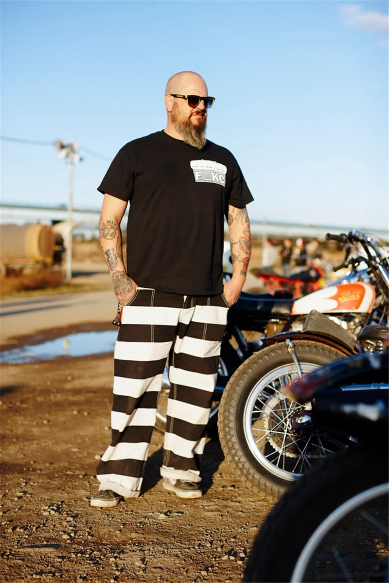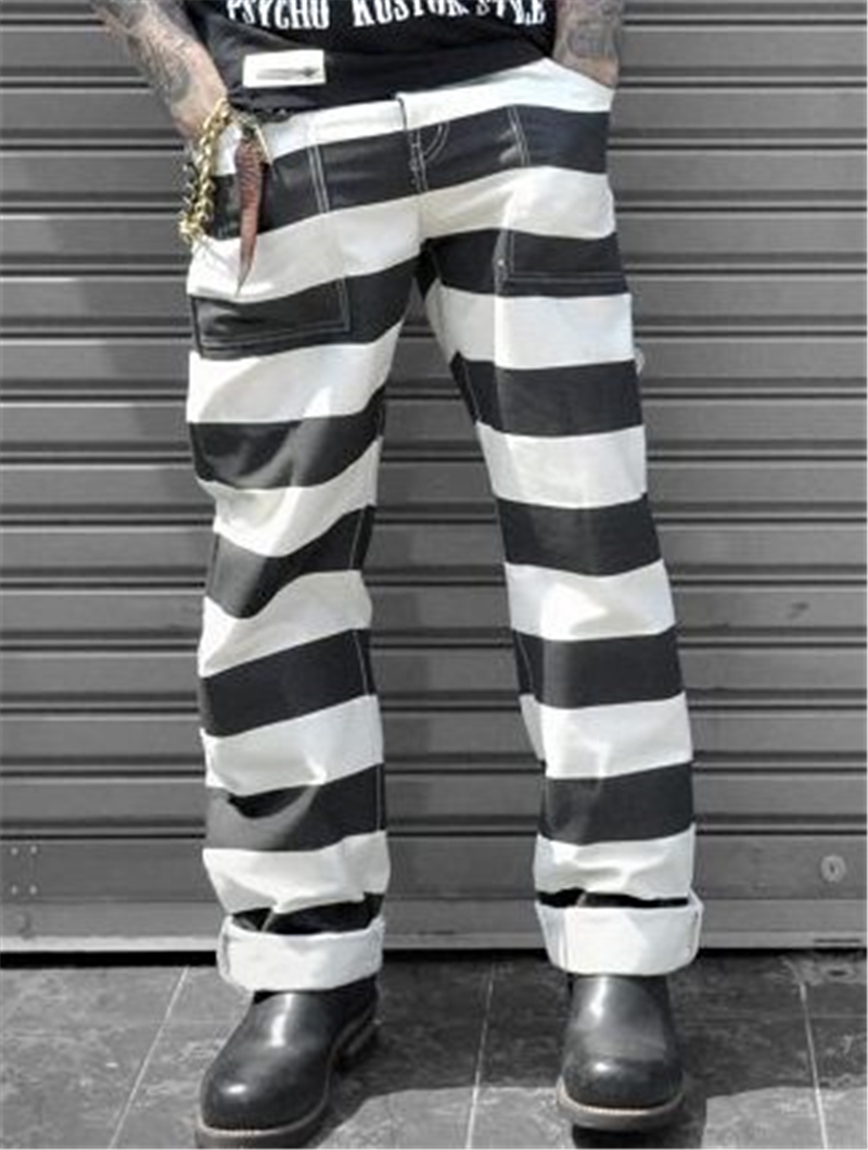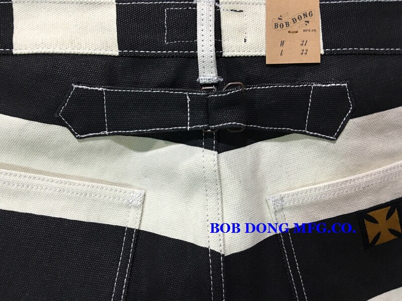 Боб Донг 16 унций Снелон полосатых тюремных штанов Мужские ретро штаны ретро -мотоциклевые штаны