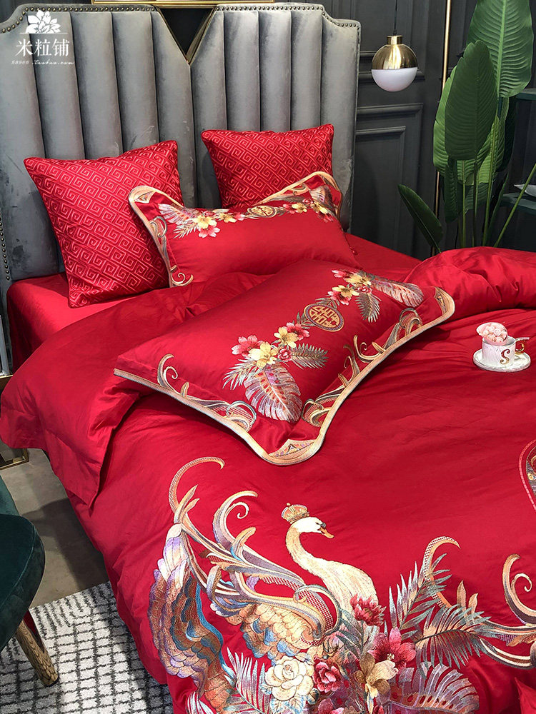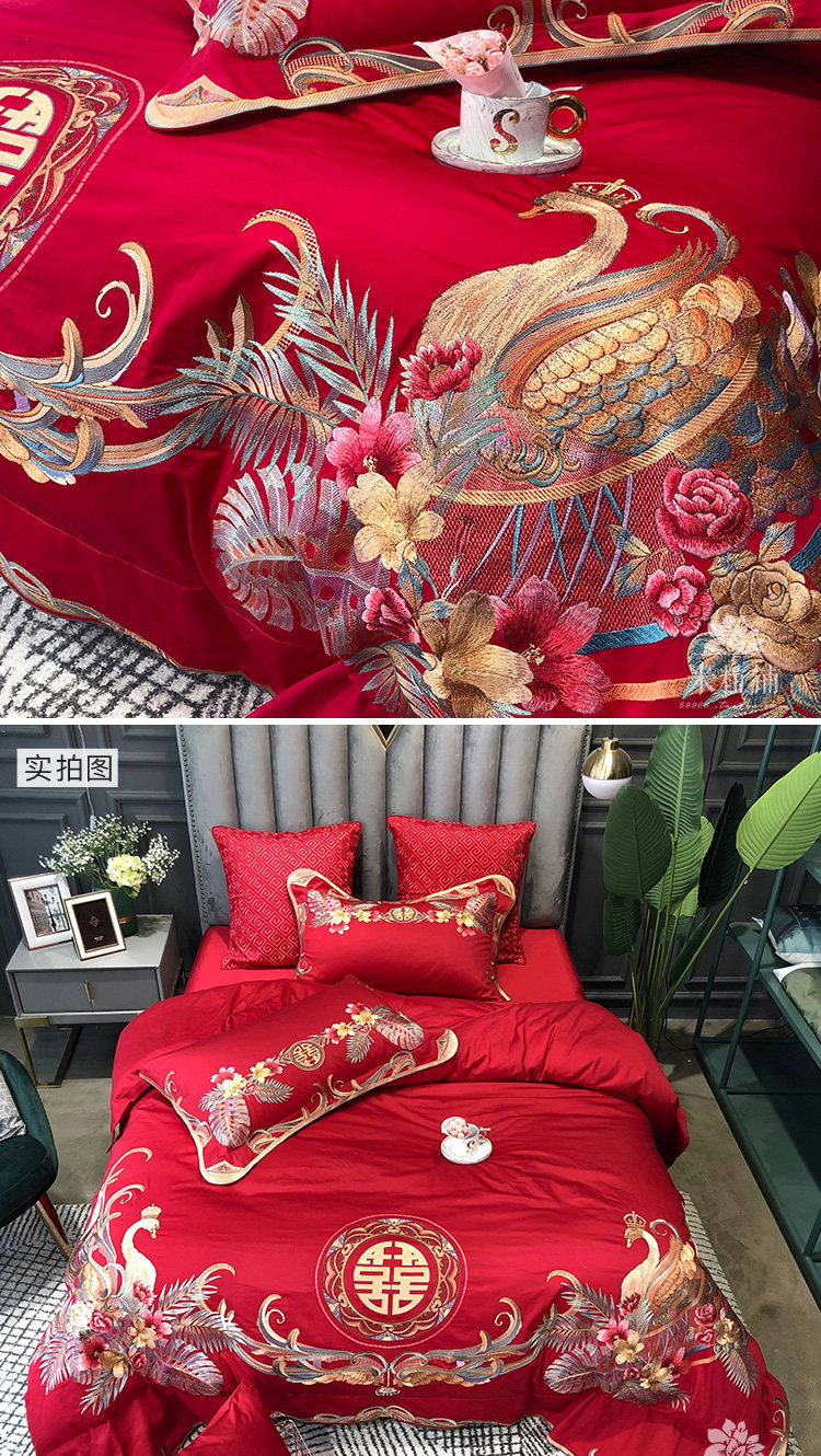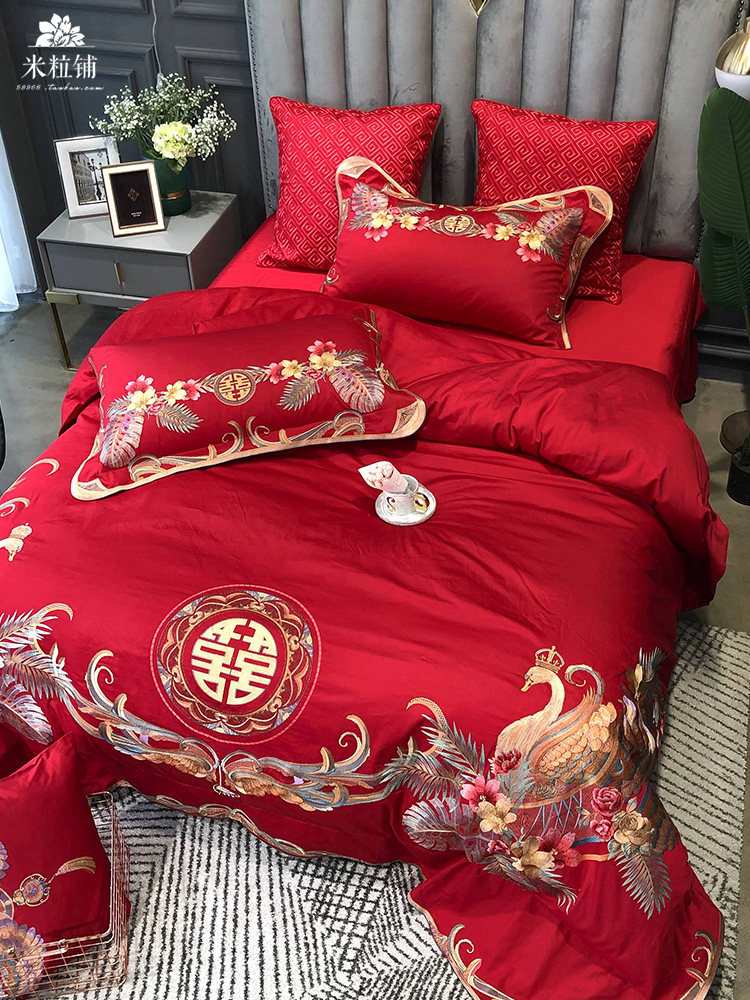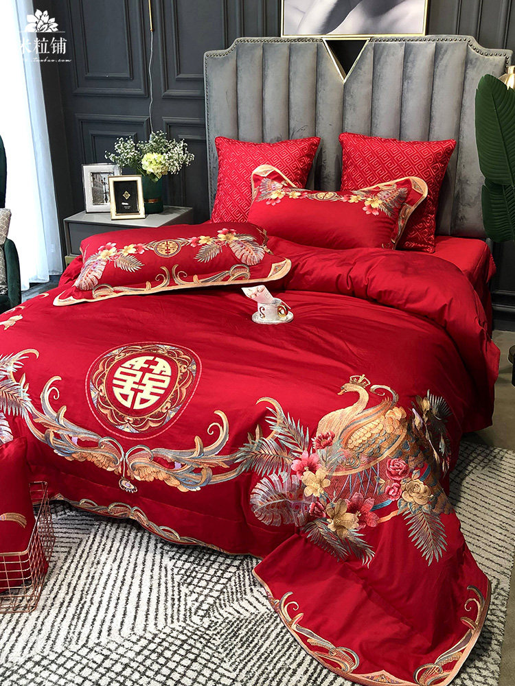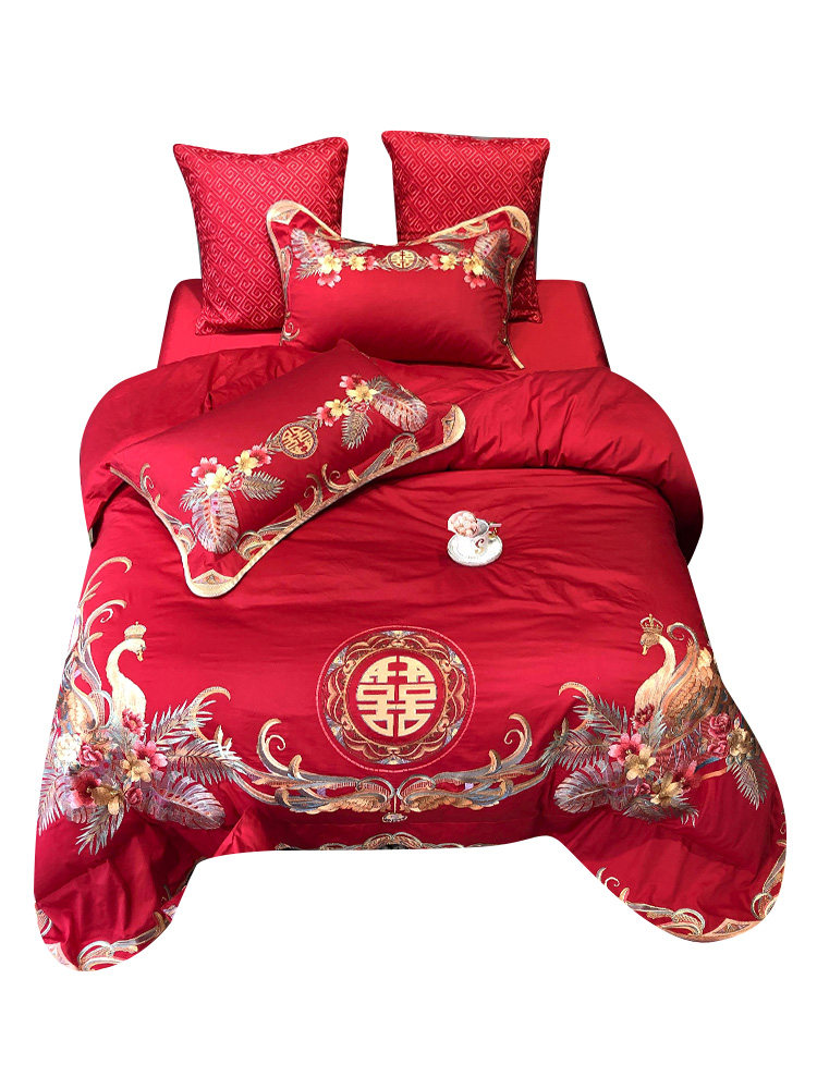 Красный комплект, хлопковое покрывало, пододеяльник, китайский стиль, 4 предмета