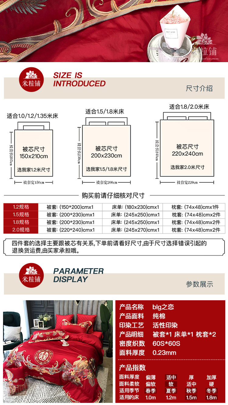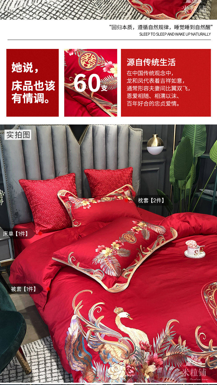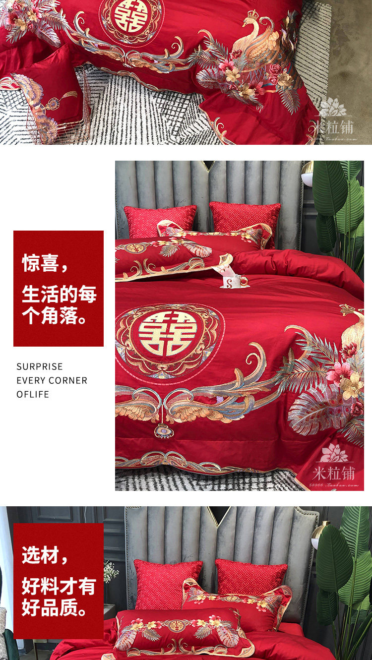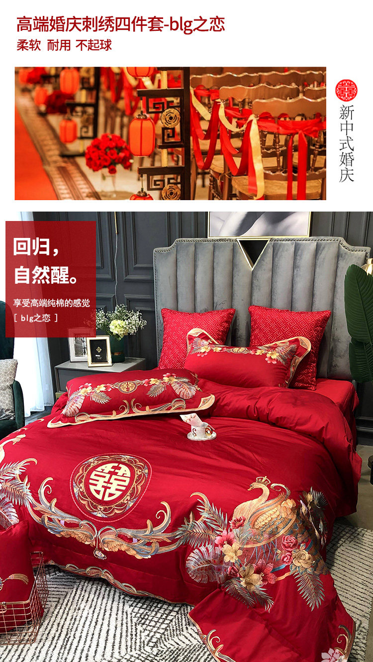 Красный комплект, хлопковое покрывало, пододеяльник, китайский стиль, 4 предмета