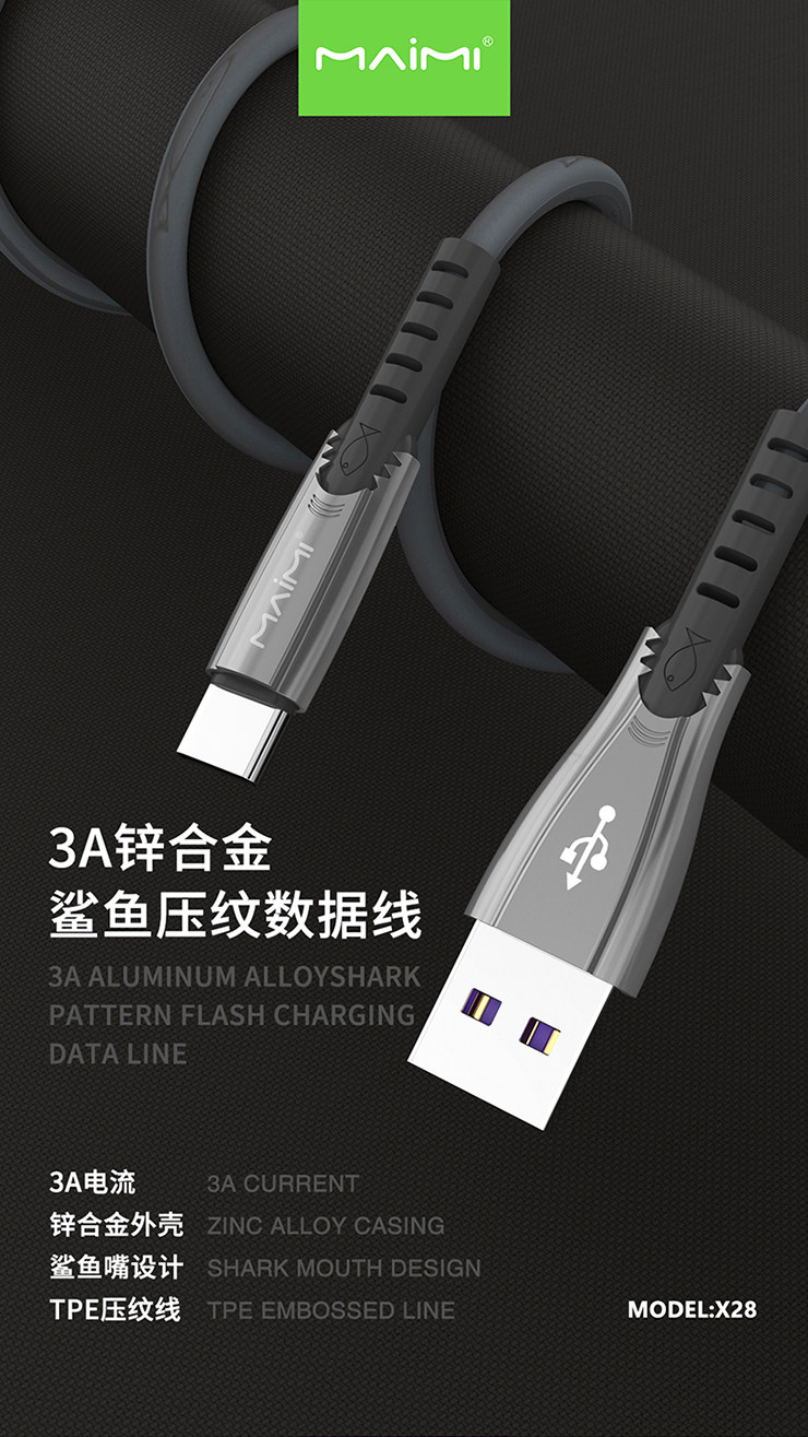 Металлический совместимый мобильный телефон, зарядный кабель, x28, iphone, андроид, 3A